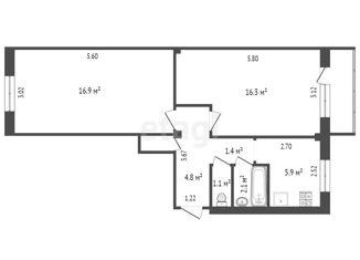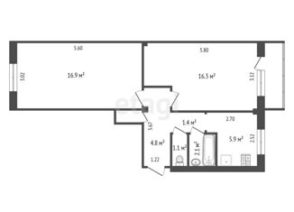 Общая площадь: 59.6 м2