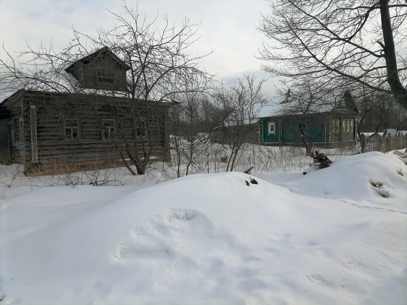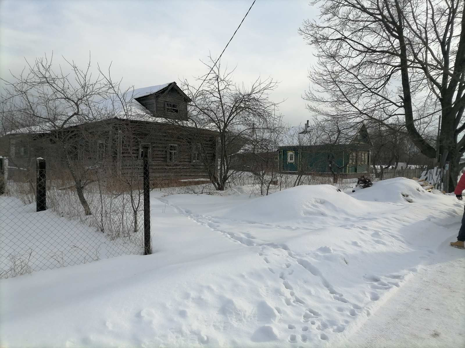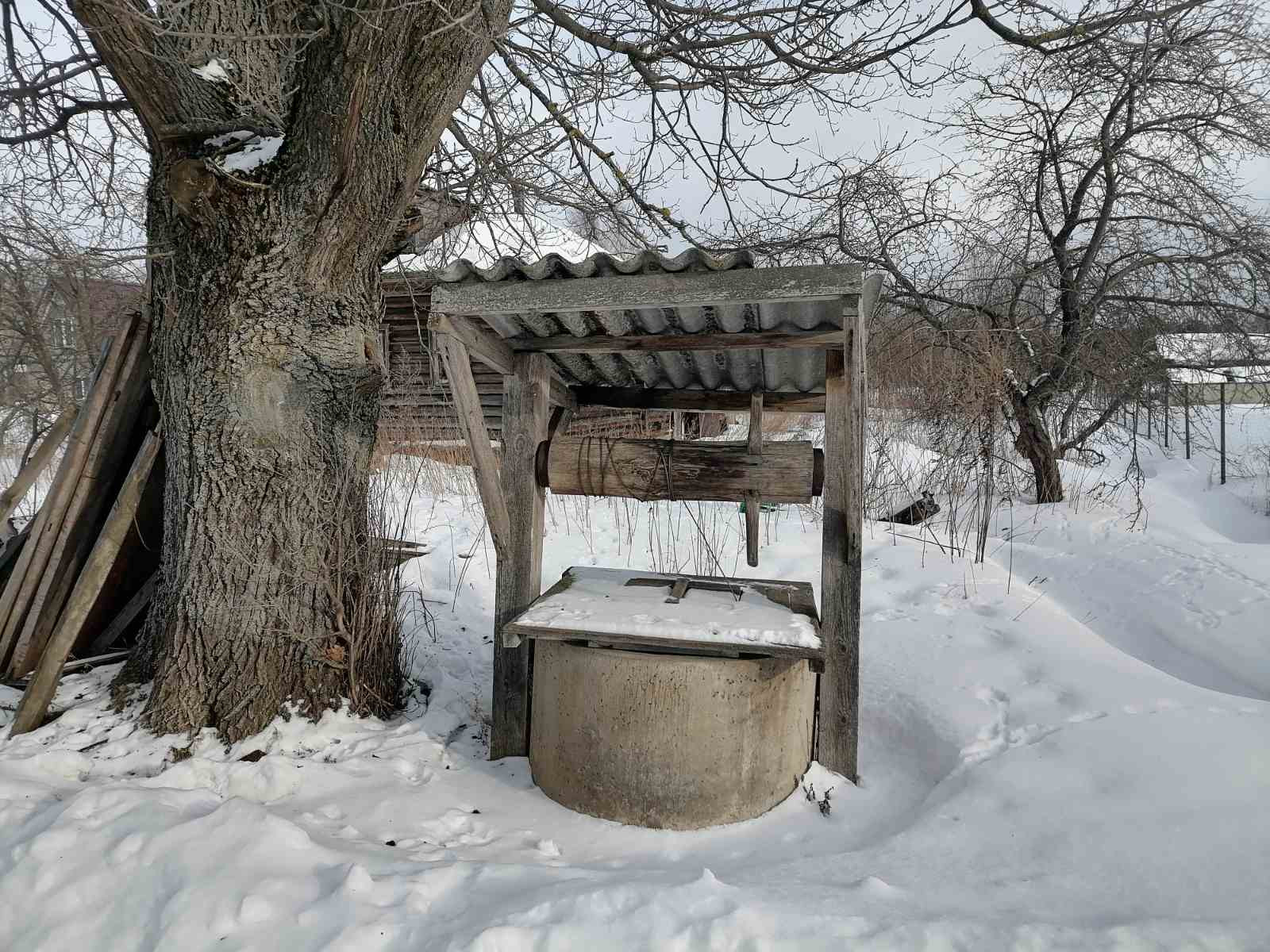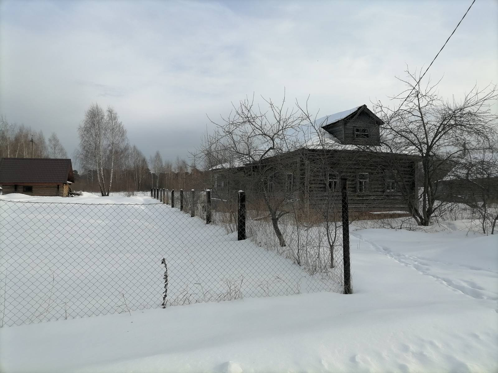 Дом , бревенчатый, 36,4 кв.м. Отопление печное. Электричество проведено. Газ по границе участка.  Рядом с домом - колодец. Дом требует ухода и ремонта.
