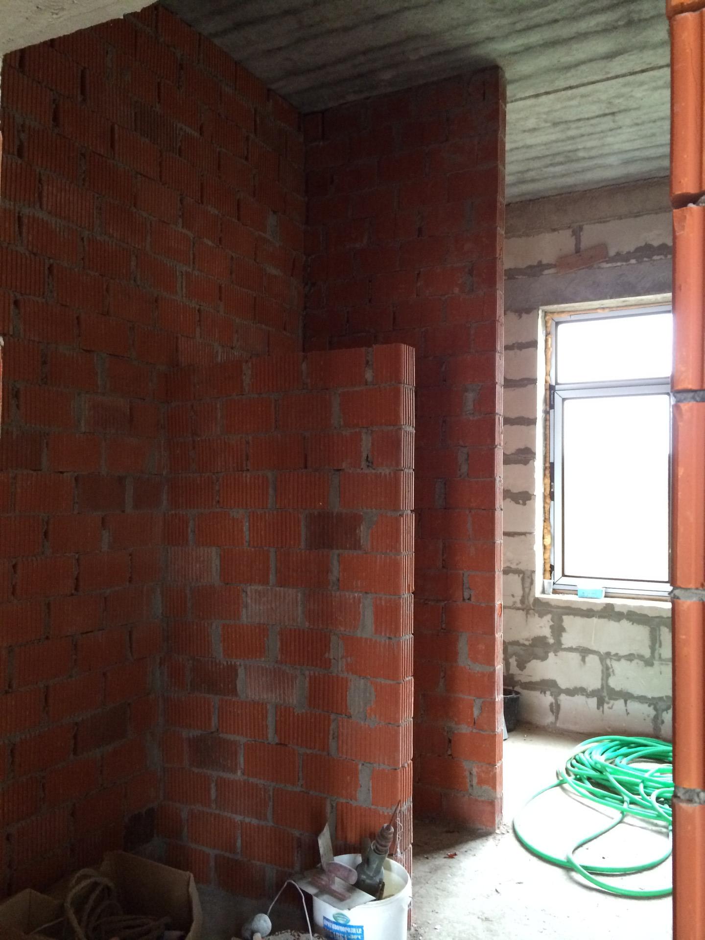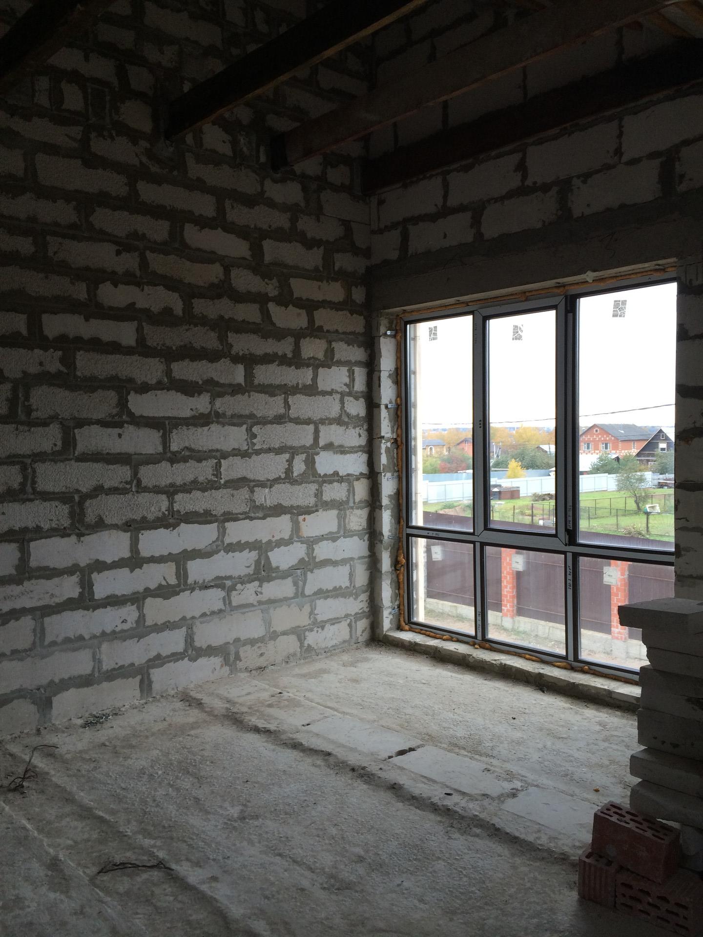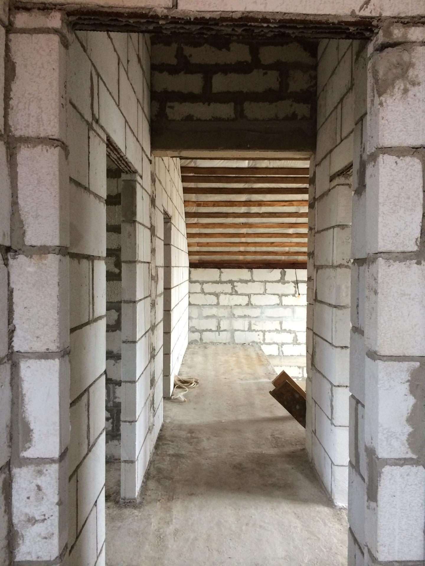Наружные1стены: Газобетонные блоки8600х400х300, армирование через ряд, клеевая смесь(5мм). Внутренние перегородки: Газобетонные блоки, кирпич.