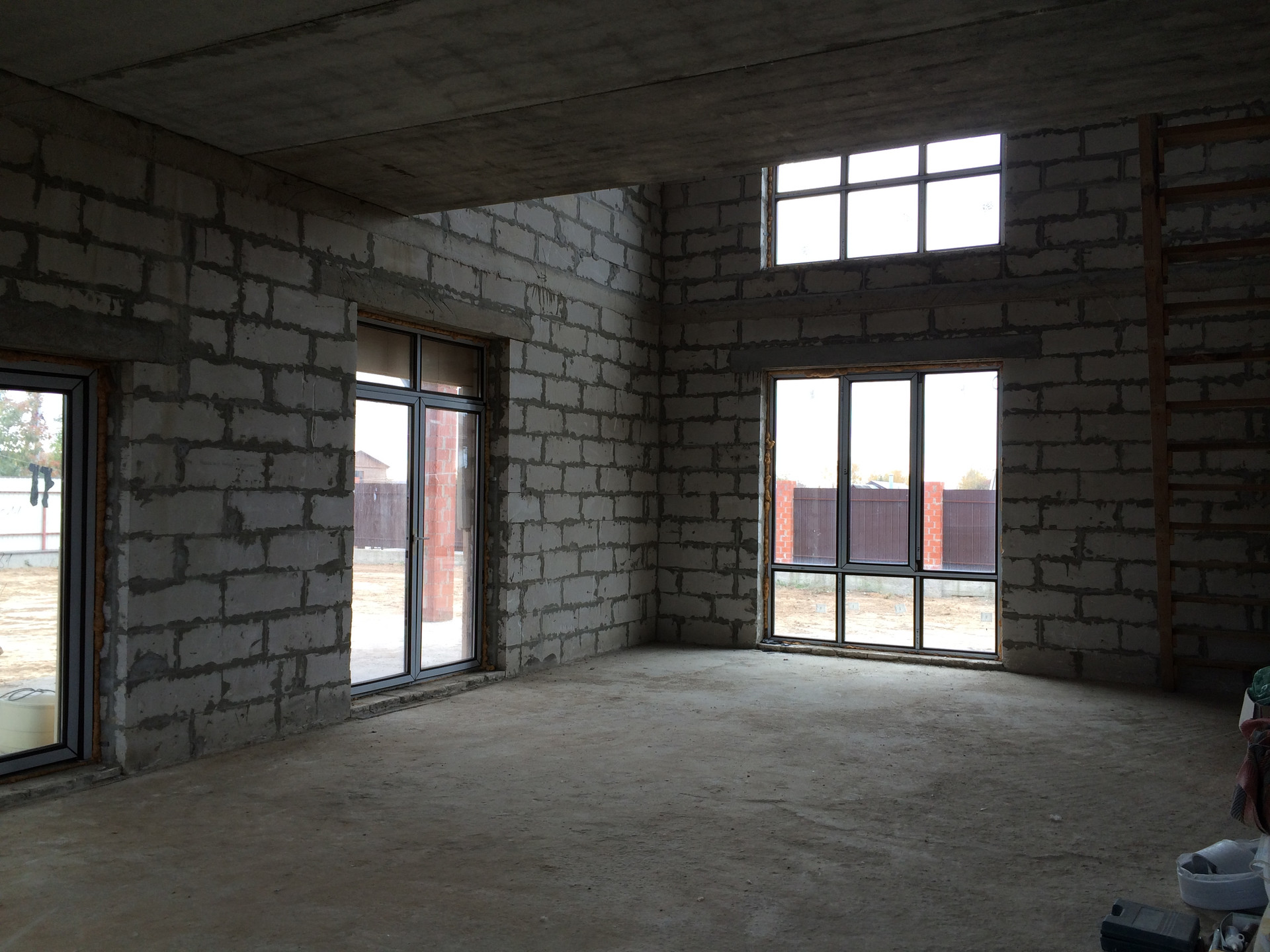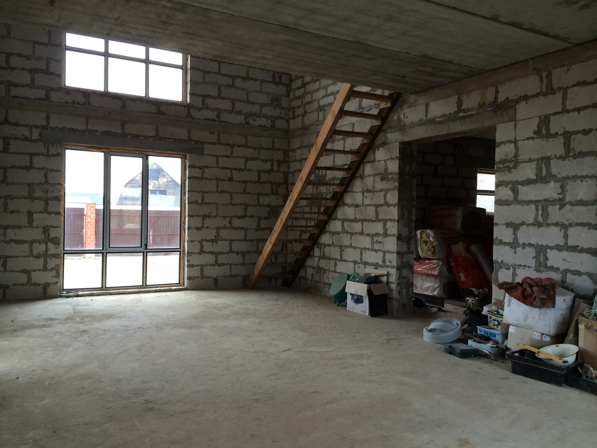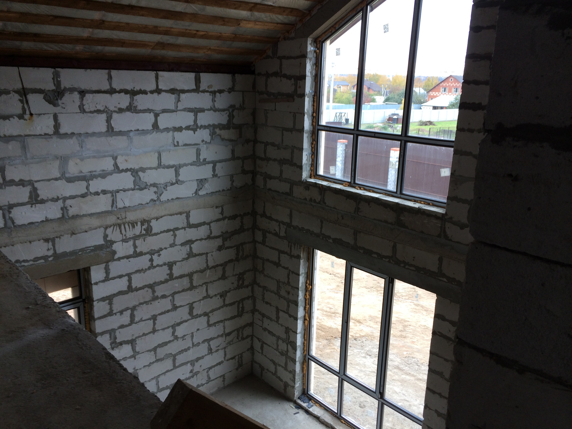 Наружные1стены: Газобетонные блоки8600х400х300, армирование через ряд, клеевая смесь(5мм). Внутренние перегородки: Газобетонные блоки, кирпич.