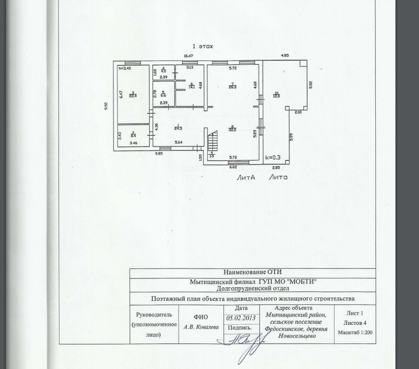 1 этаж: Мансардный. Перекрытие :Ж/Б плиты 0,25м. Наружные стены:. Крыша: Балки перекрытий дерево200х50, фанера, утеплитель, пароизоляция , гидро
