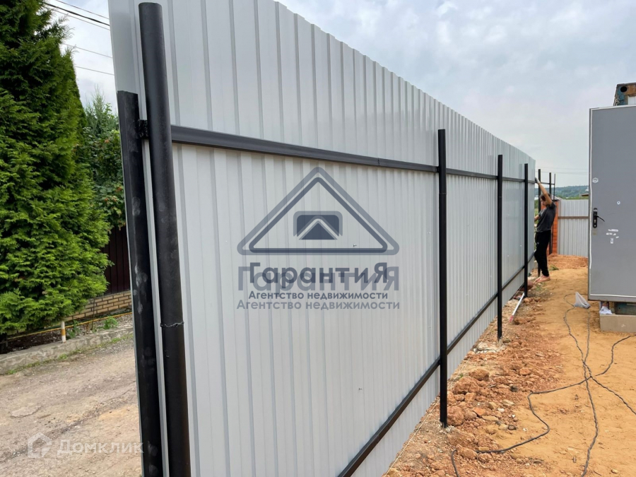 Территория полностью огорожена, забор с откатными воротами.