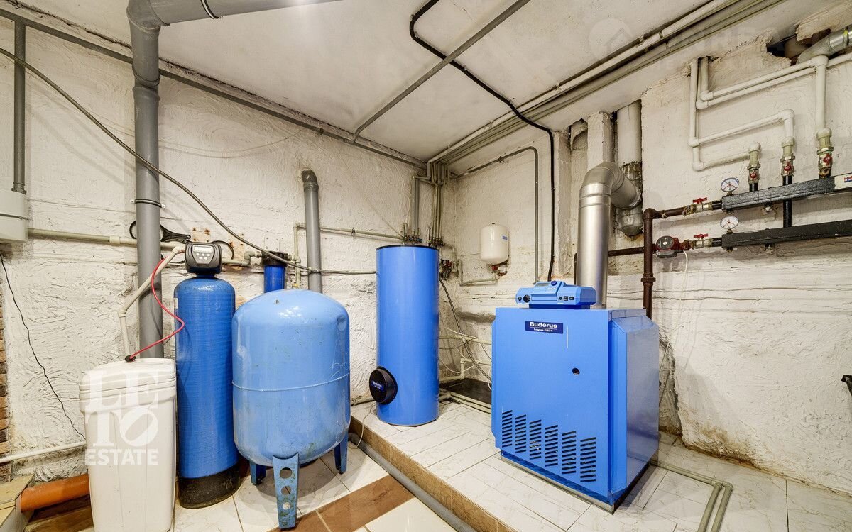 Коммуникации: магистральный газ (газовое оборудование фирмы Вudеrus) электричество 15кВт, водоснабжение – скважина (установлена система водоочистки), канализация - септик.