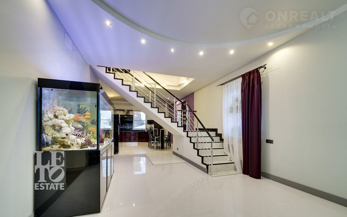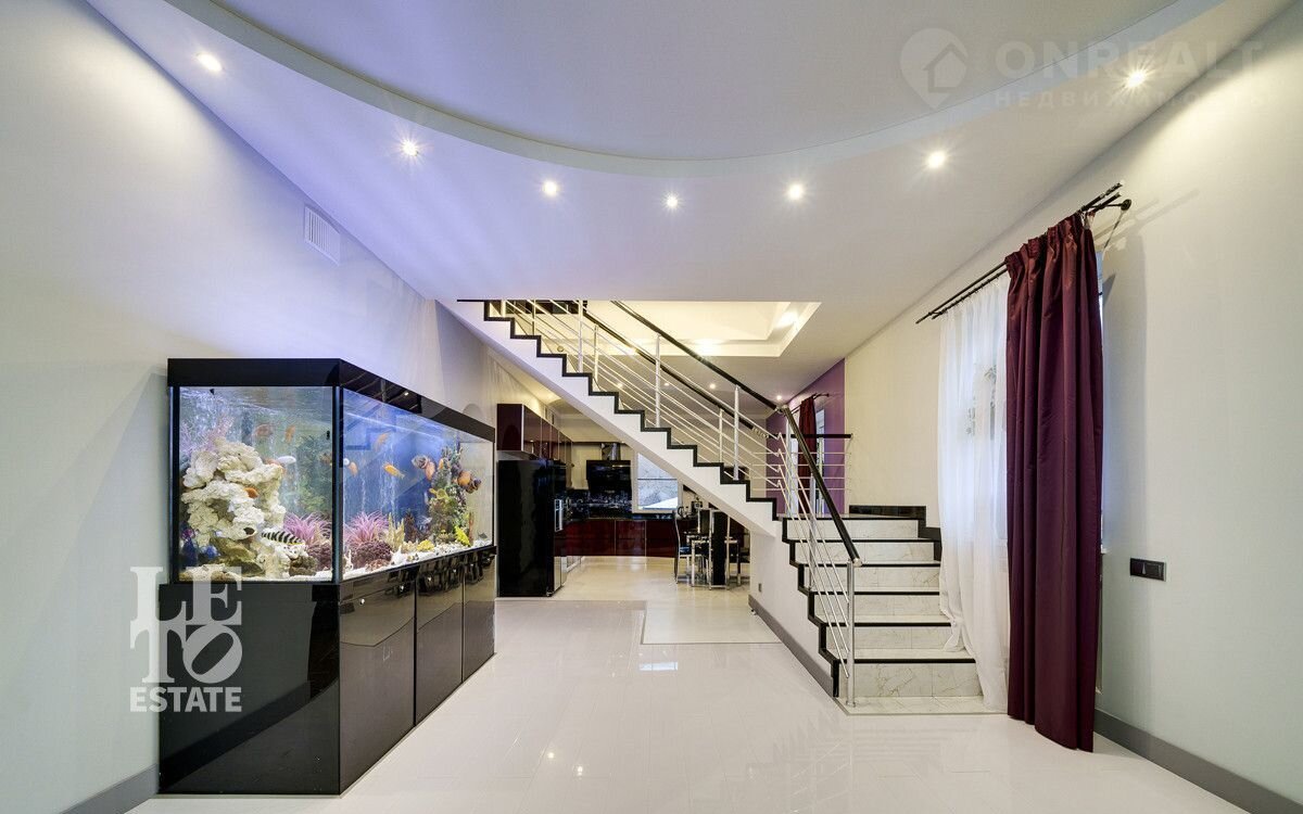 Интерьер дома оформлен в современном стиле с добавлением ярких акцентов и детального дизайна, что делает пространство функциональным и придает дому невероятную красоту и уют.