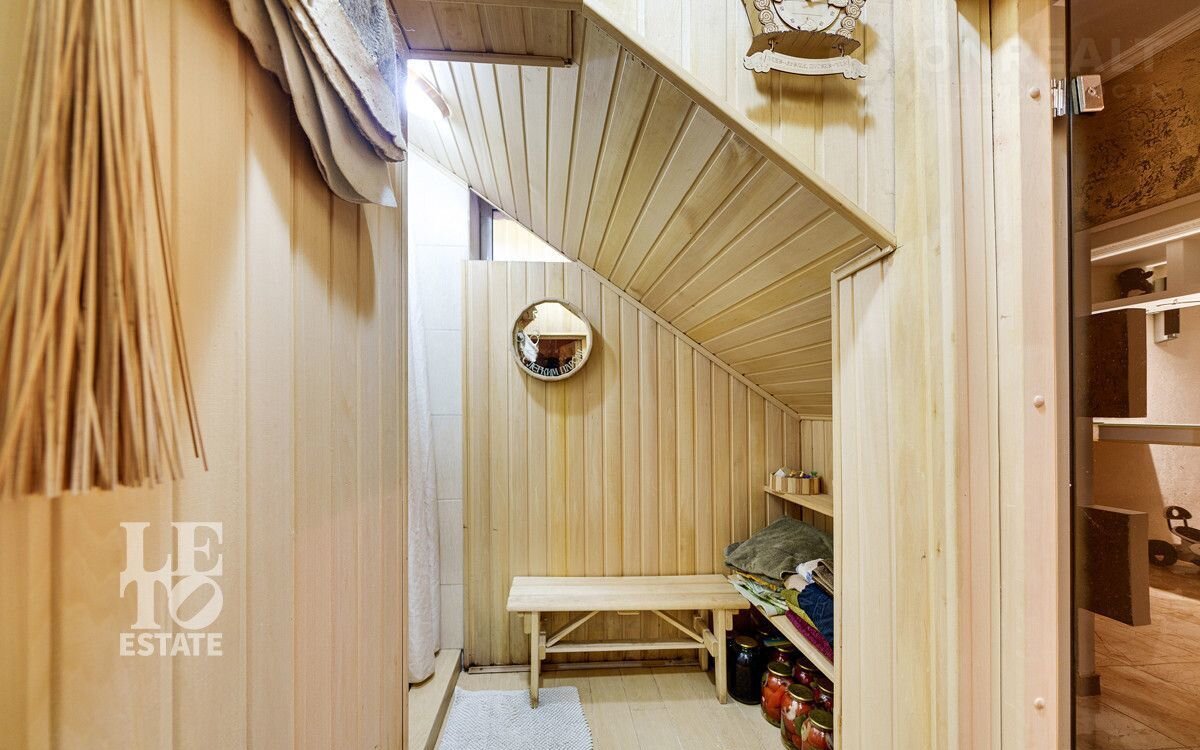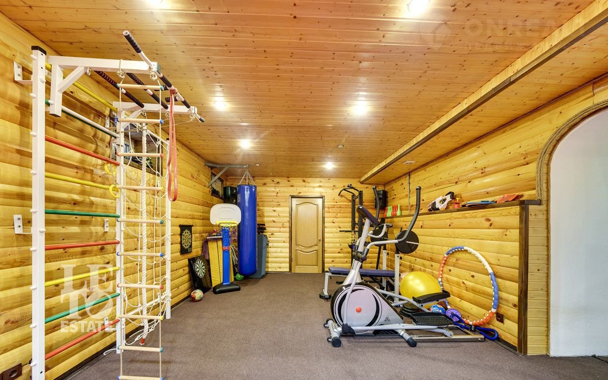 Цокольный этаж: спортивный зал, сауна с зоной отдыха, душевая комната, санузел, котельная.