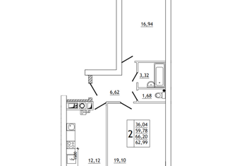 2-ком. квартира на продажу, 66.3 м2, Юбилейная улица, 17