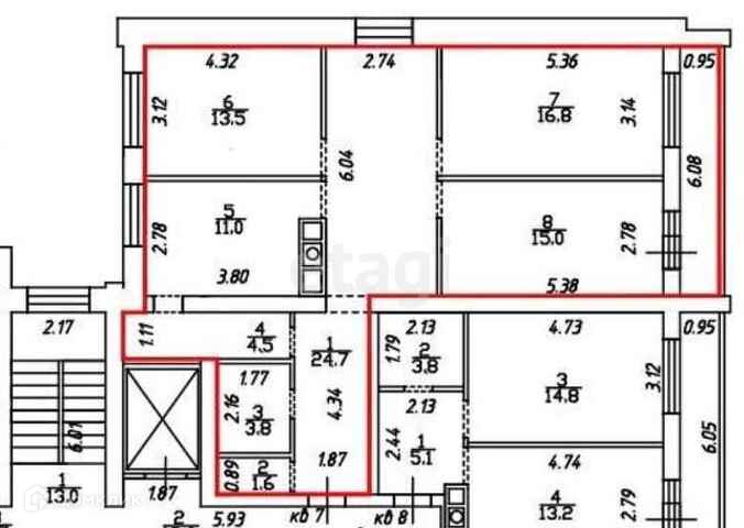 Общая площадь 90.9 м2
