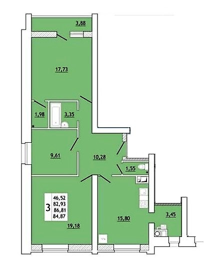 Общая площадь 86.81 м2