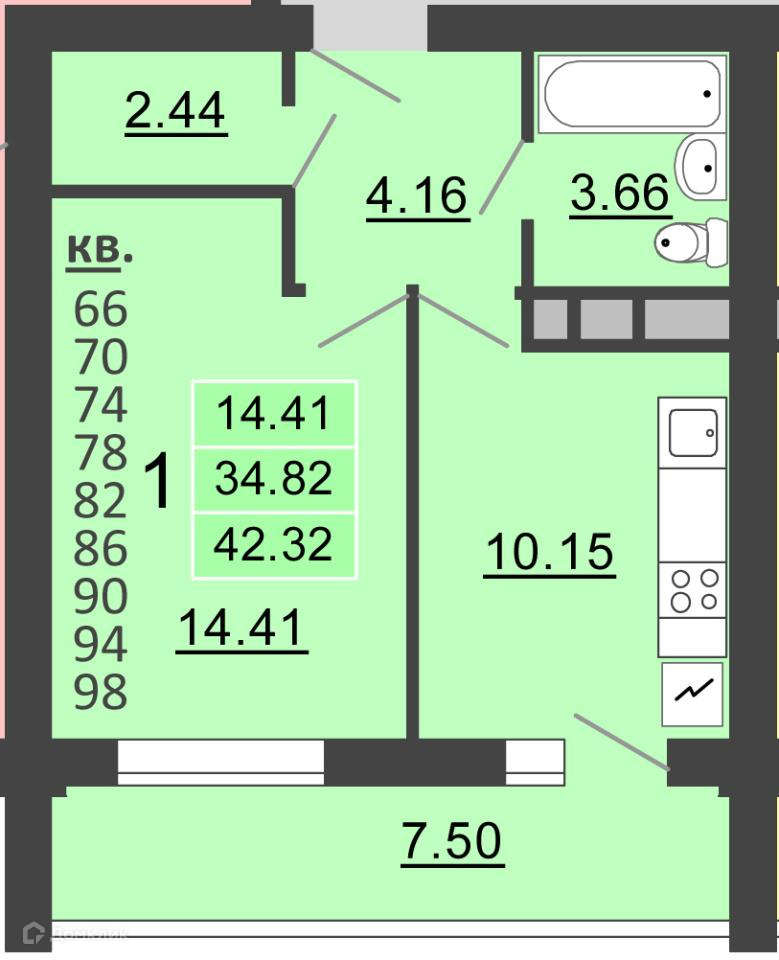 Общая площадь 41 м2