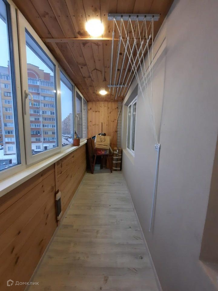 Лоджия утеплена, обшита вагонкой и остеклена двухкамерным стеклопакетом.