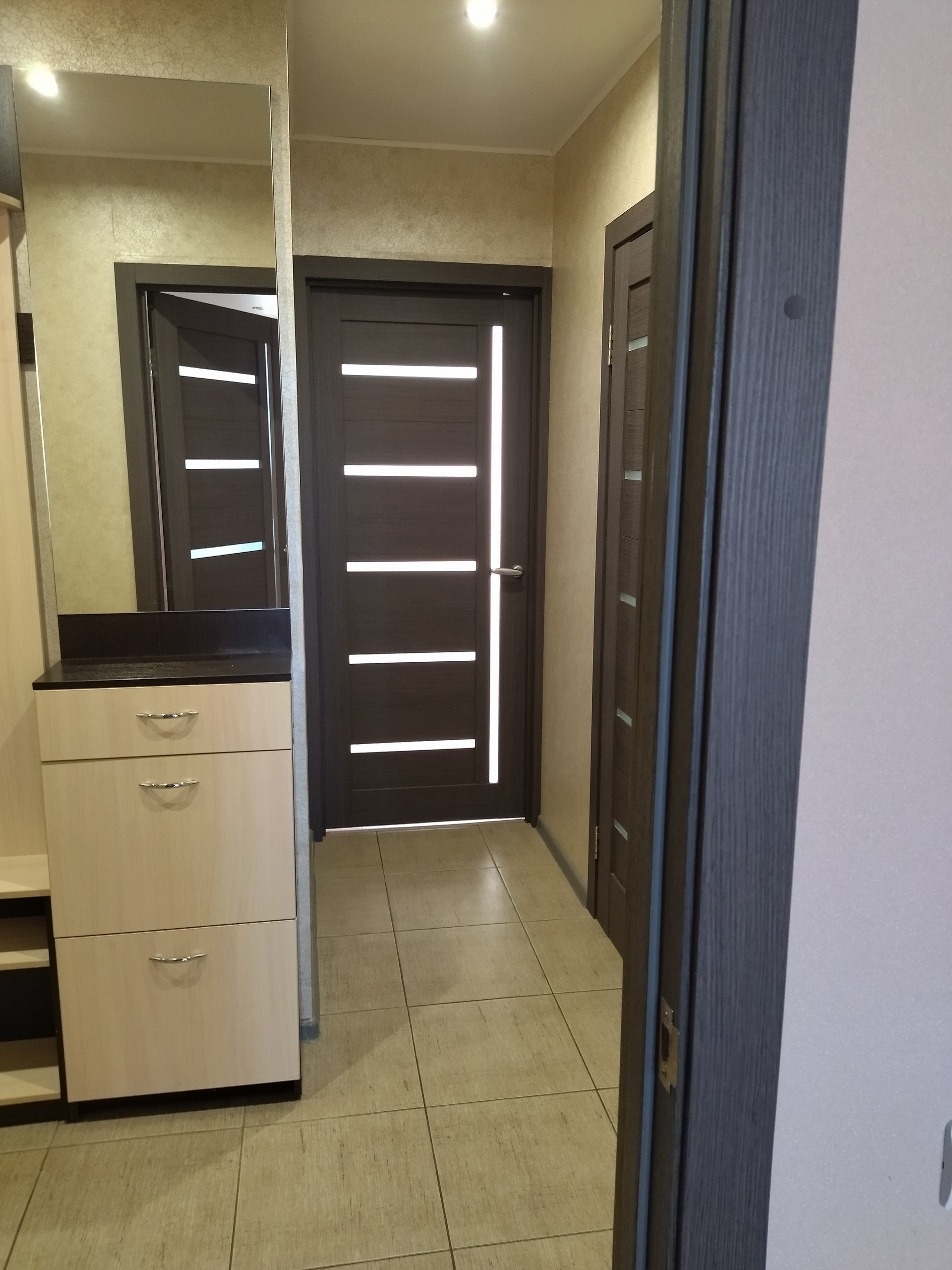 В квартире сделан ремонт, лоджия застеклена, санузел раздельный, потолки натяжные, ламинат в комнатах, прихожая, кухня, ванная и туалет - в плитке. Не угловая, окна выходят на две стороны, в квартире не курили, домашних животных не было.