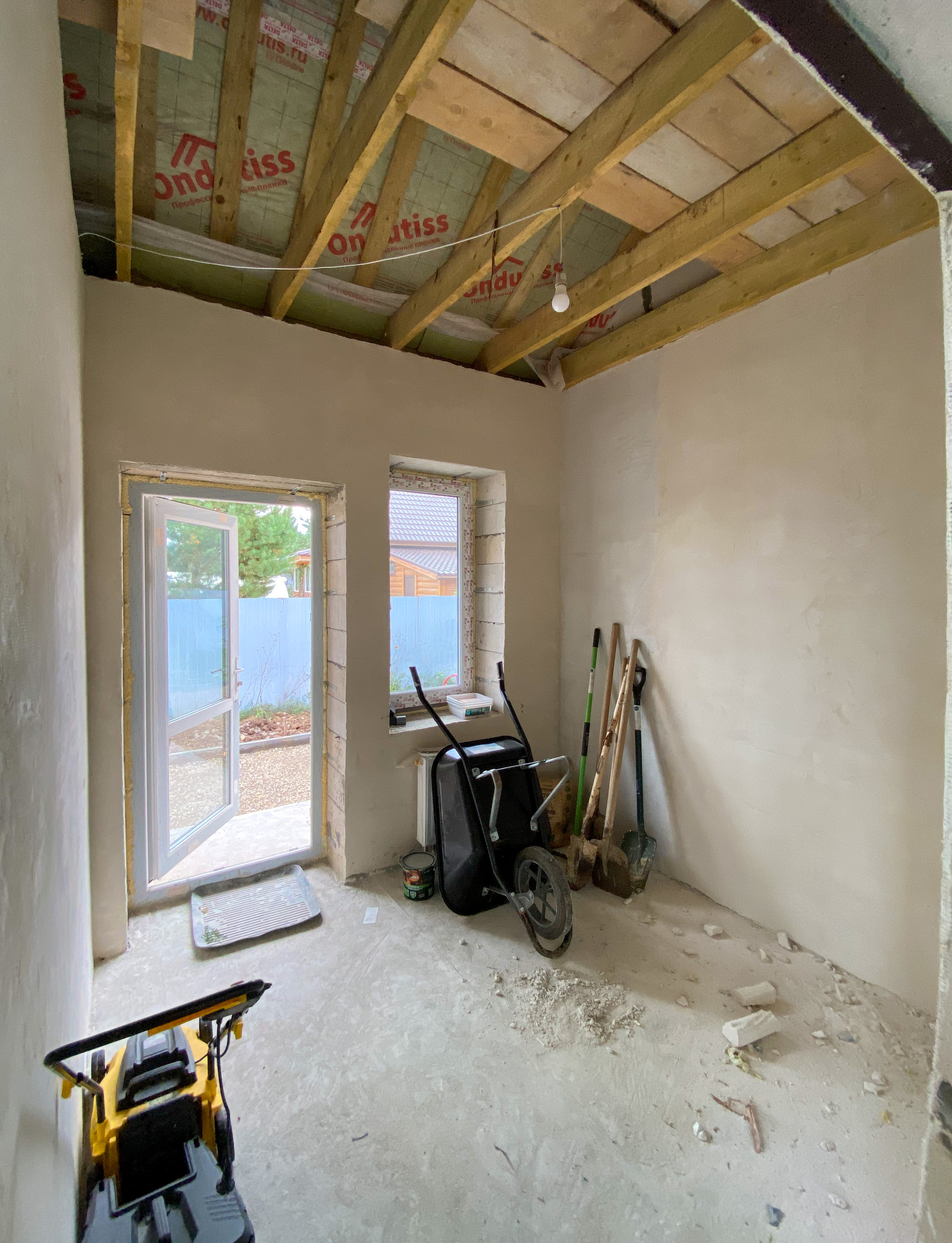ВЫПОЛНЕНЫ РАБОТЫ по разводке электричества, монтажу вентиляции, частичной штукатурке стен.