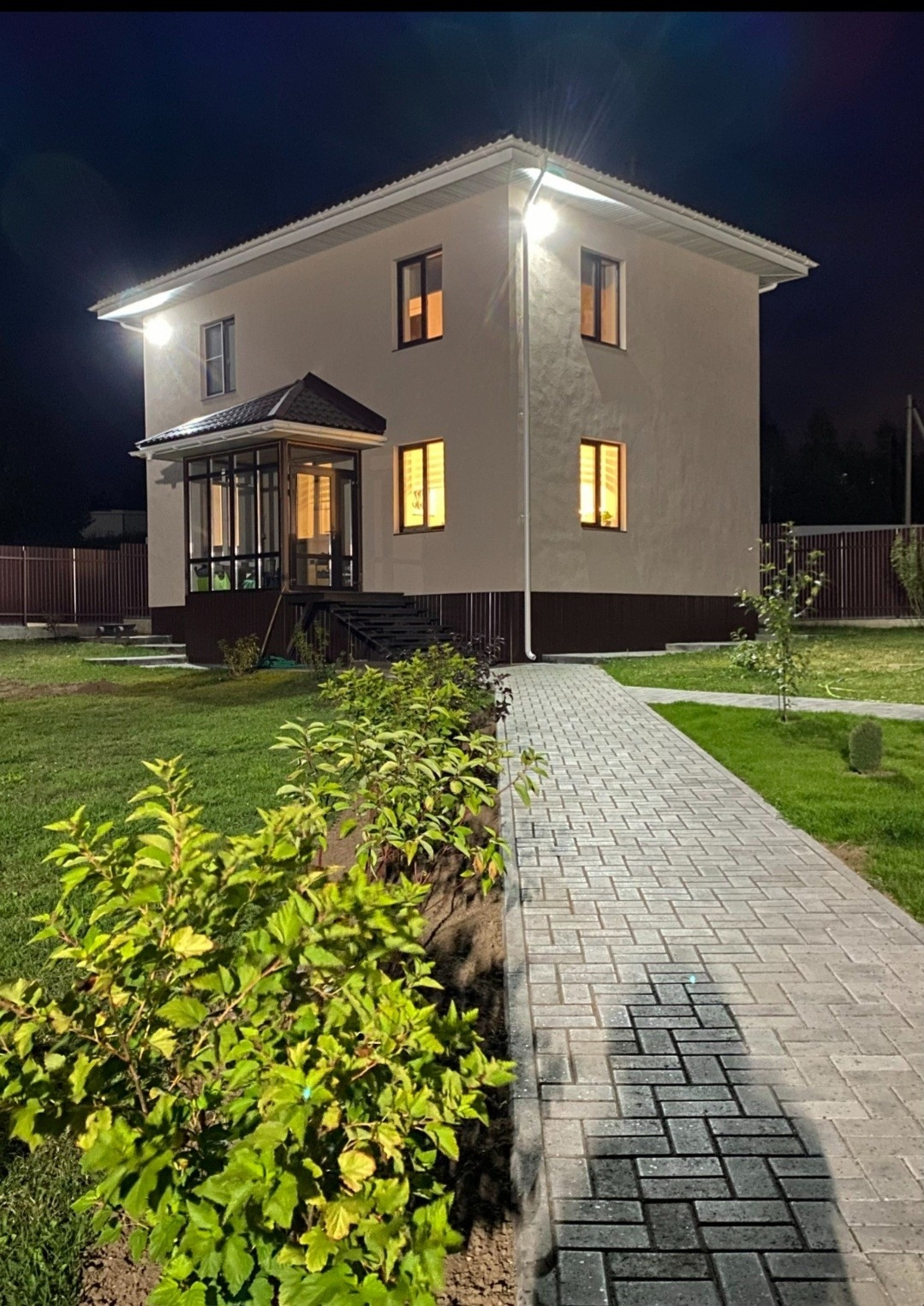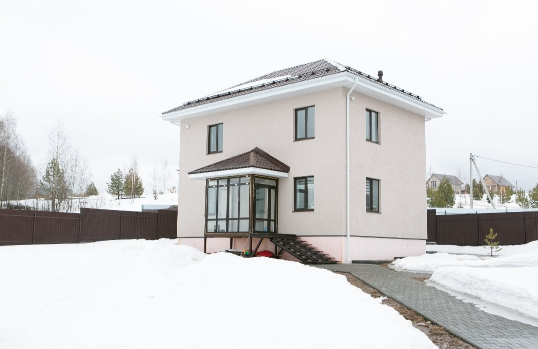 Фасад дома выполнен "мокрой" штукатуркой производства ''Ceresit'' Окна фирмы ,,Rehau''
