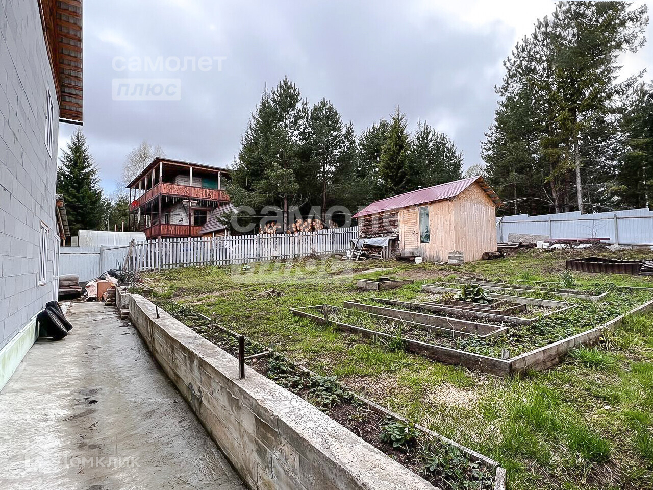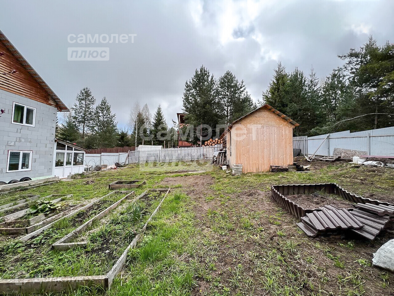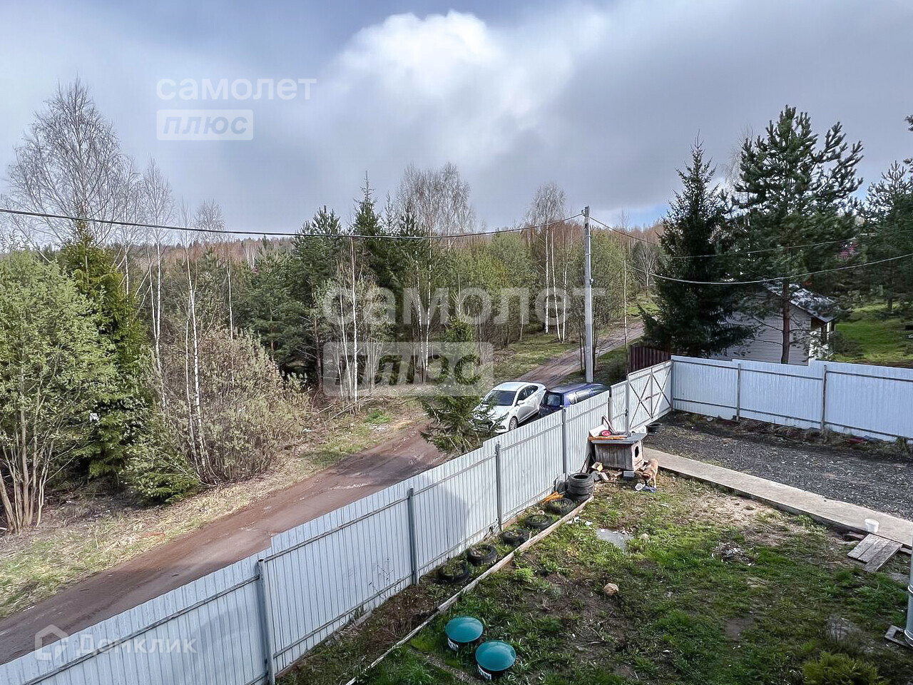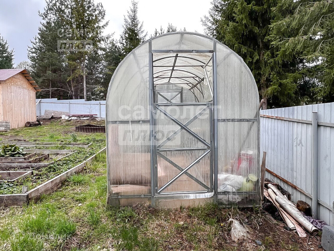 По периметру участка забор. Фасадная сторона - профлист, внутри - сетка рабица.