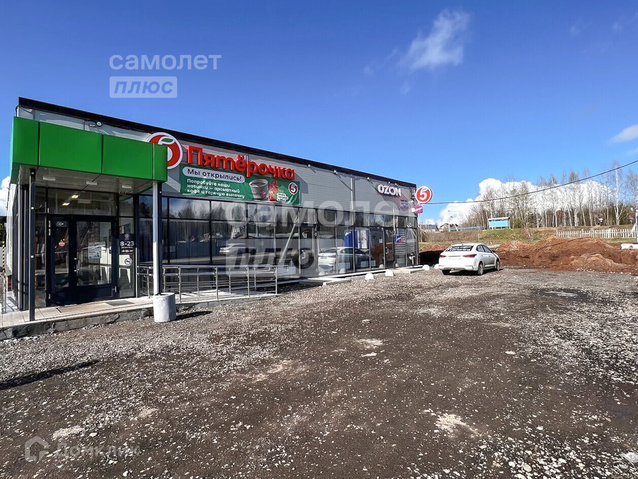 на въезде в поселок есть ряд магазинов: Пятерочка, продуктовый, строительный, Куединский.