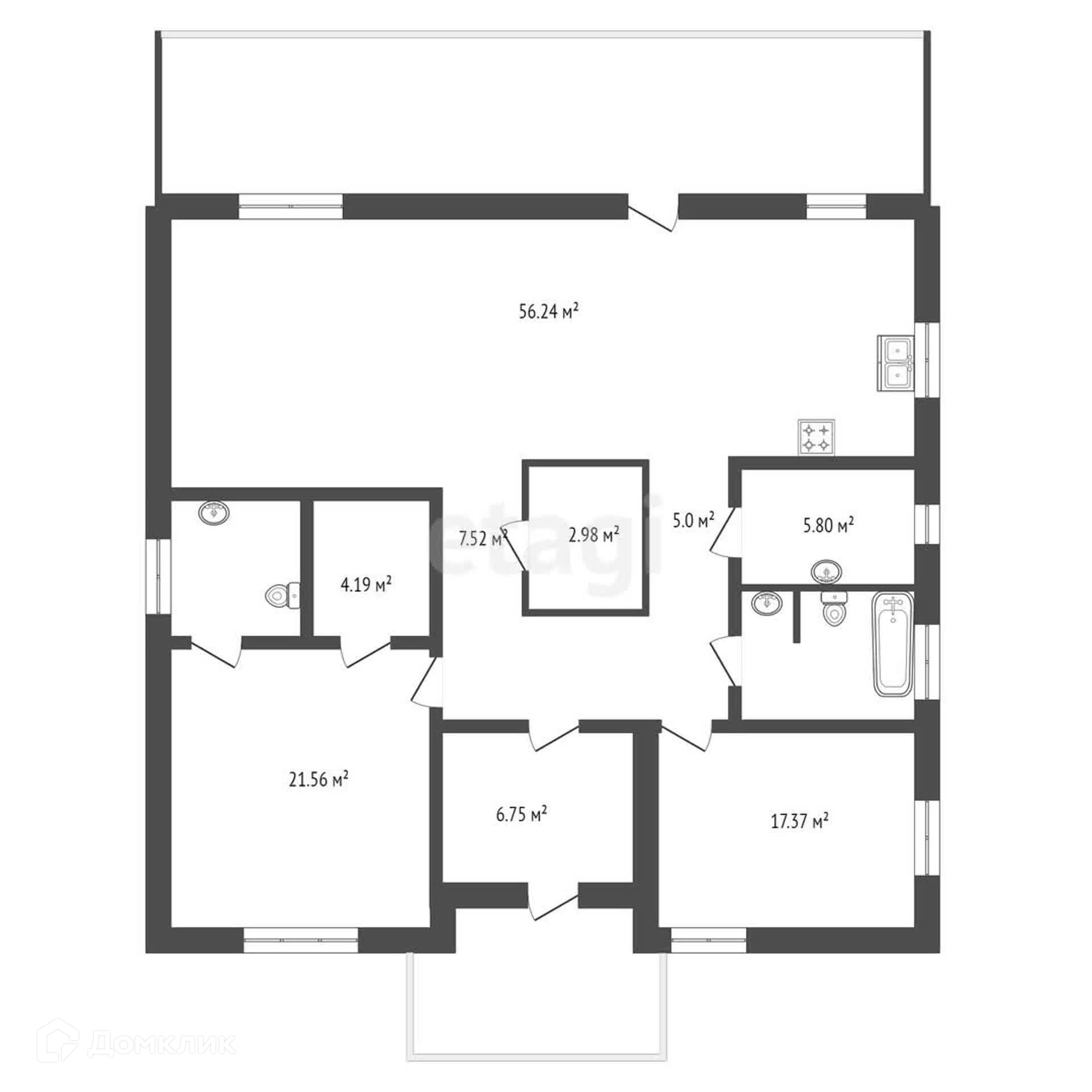Просторная кухня-гостиная - 56.24м² с выходом на террасу - 30.14м²