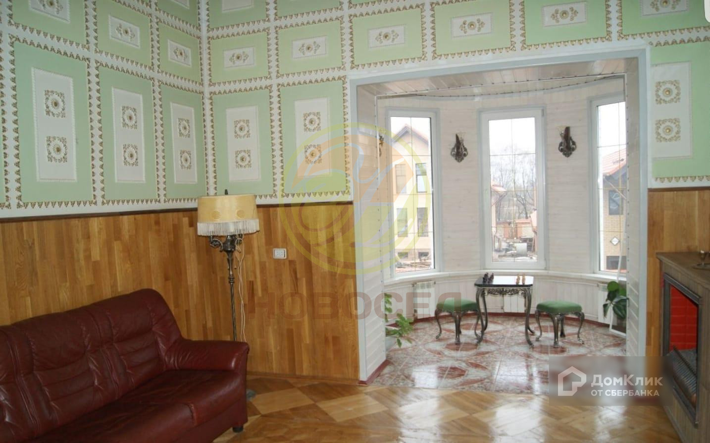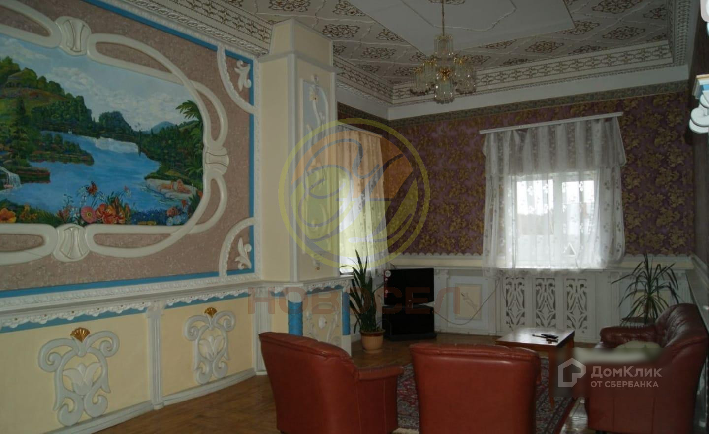 На полу паркет, окна стоят пластиковые, на потолках везде лепнина.