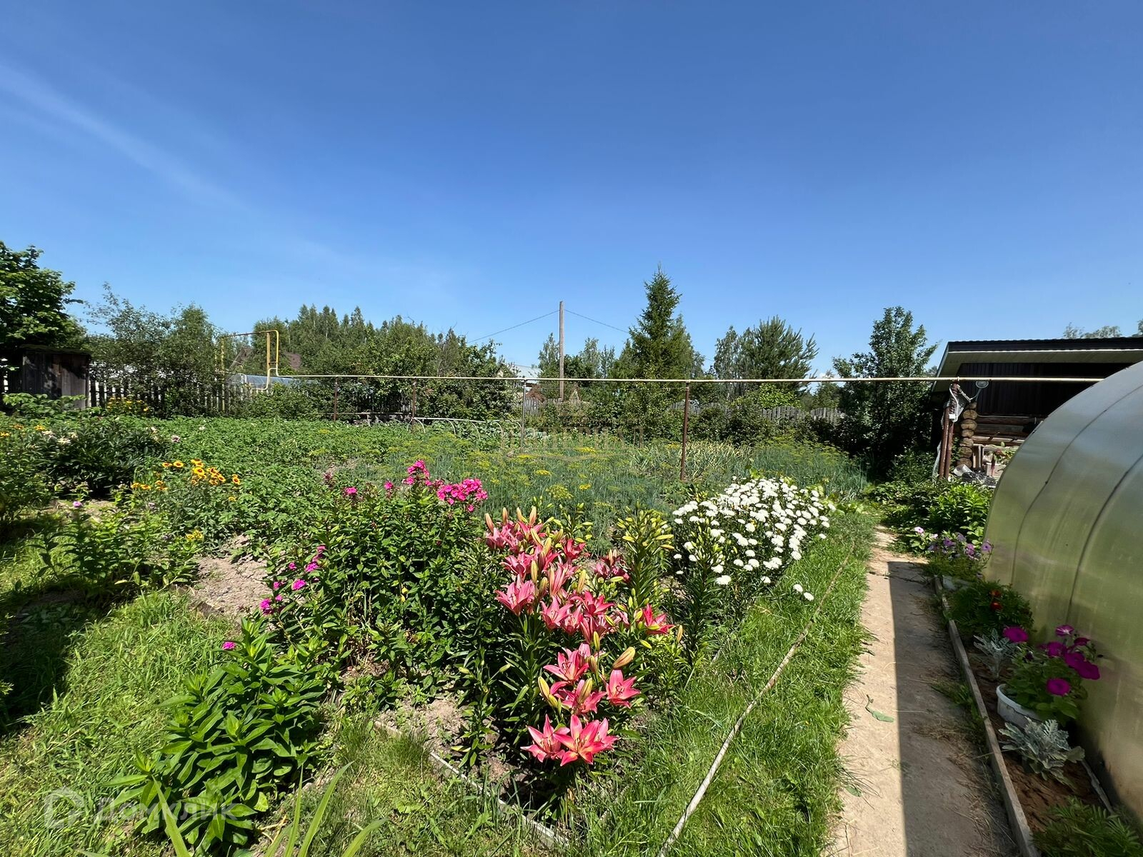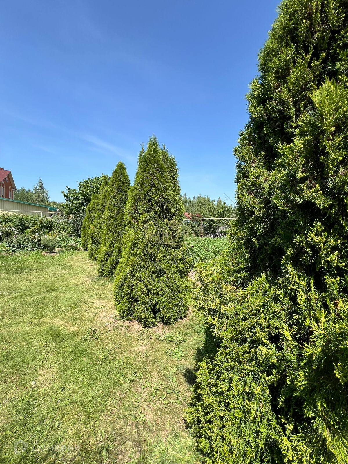 Дом расположен на ровном участке правильной прямоугольной формы площадью 12 соток: