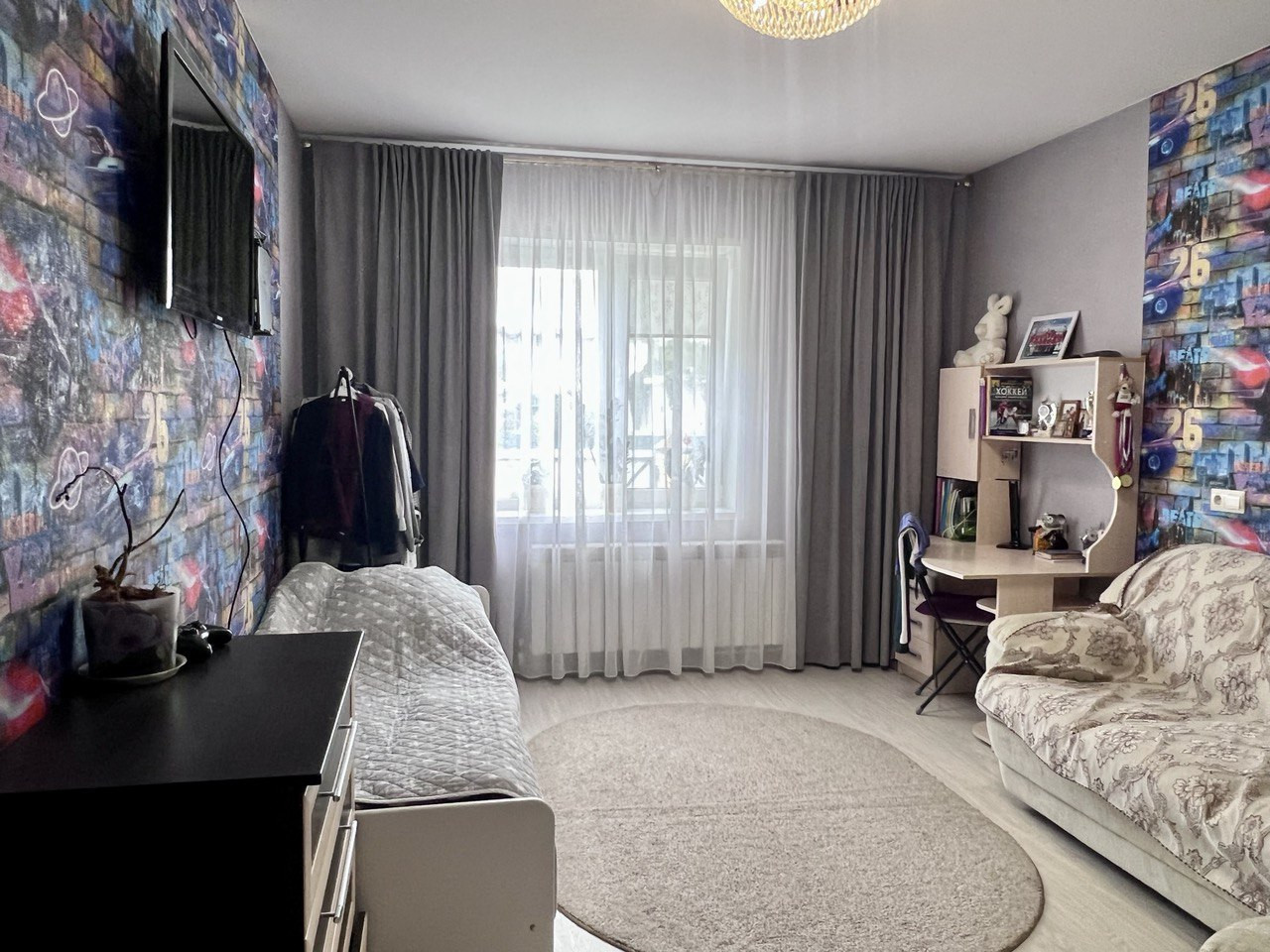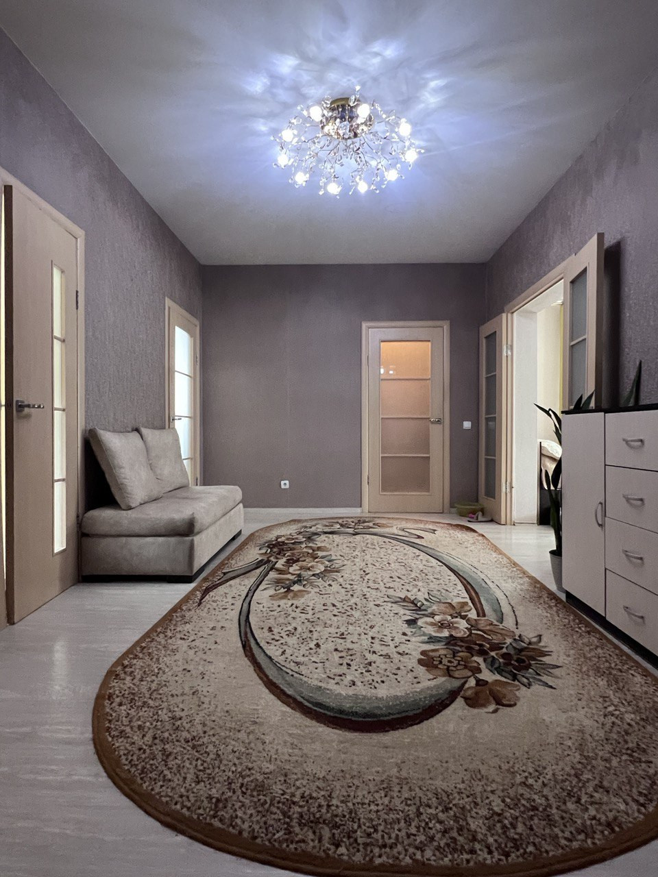 Для комфорта сделаны тёплые полы на кухне, в коридоре и в сан.узле. Установлены натяжные потолки и пластиковые стеклопакеты.