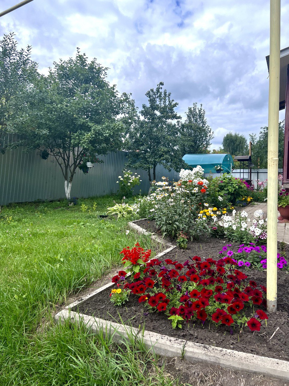 Установлена новая теплица и сарай для хранения хозяйственных инструментов. А также беседка для приятного времяпрепровождения на свежем воздухе. Рядом красивая клумба с многолетними цветами. Высажены плодово-ягодные культуры, которые каждый год дают вкусный урожай.