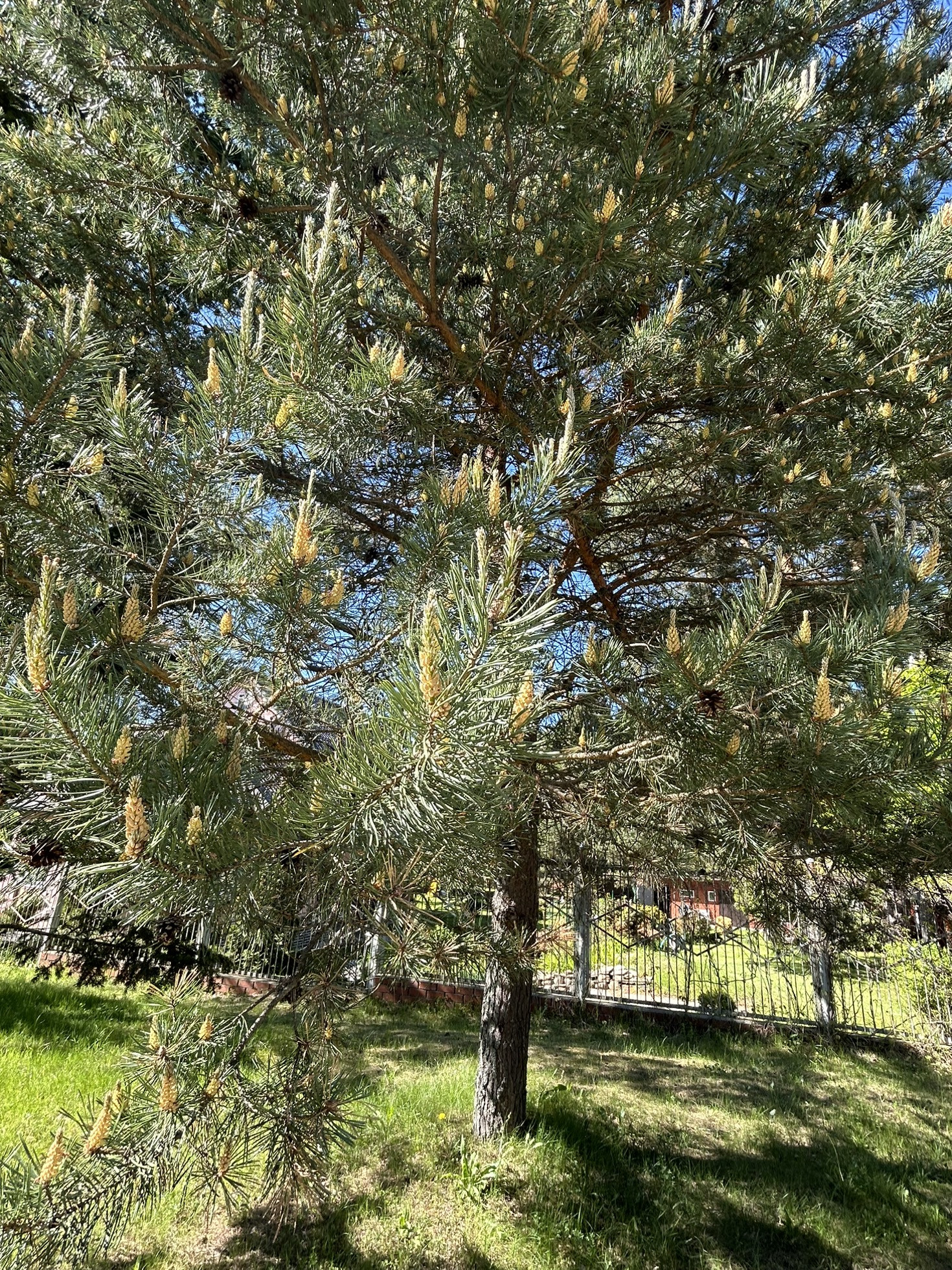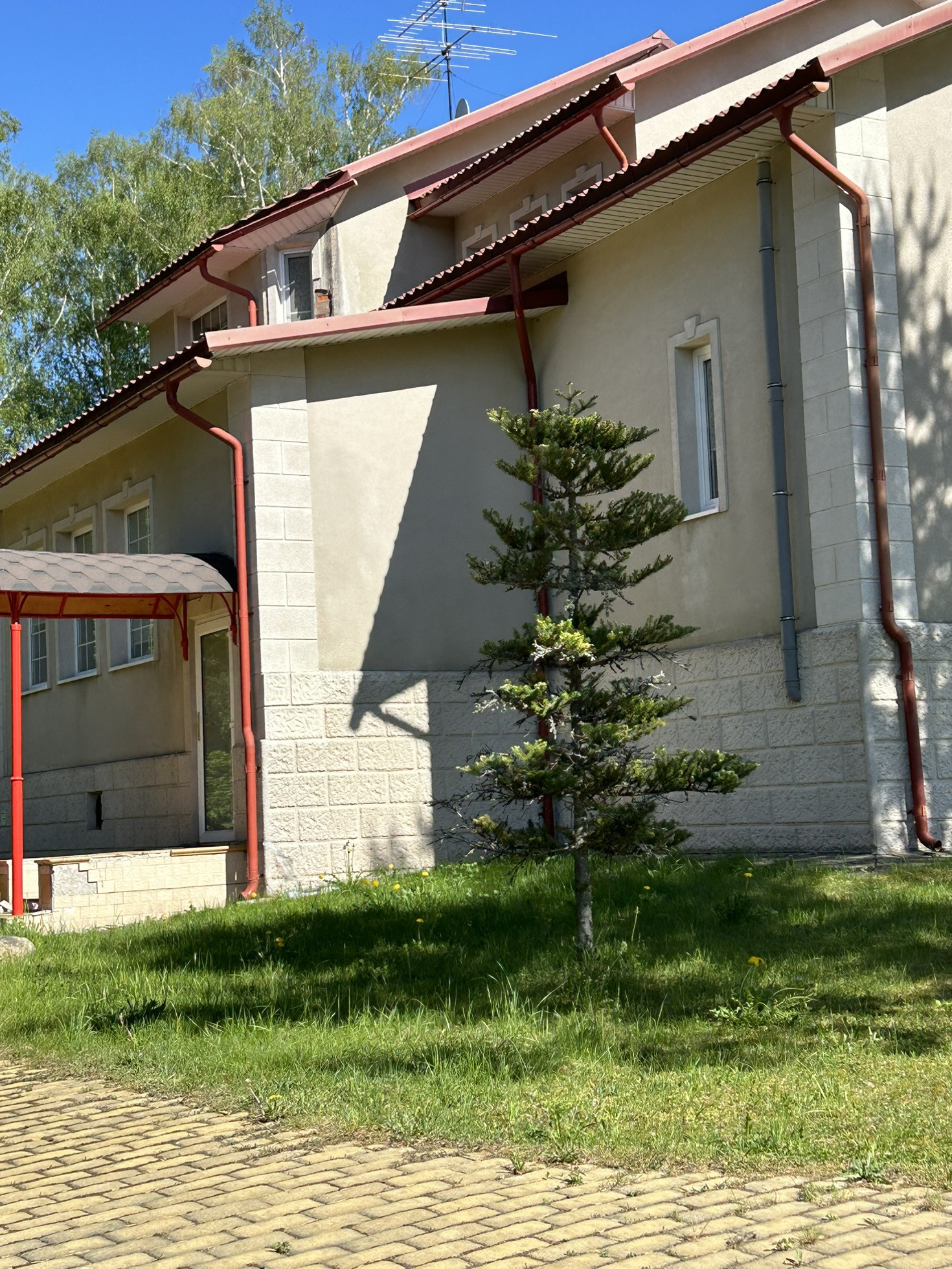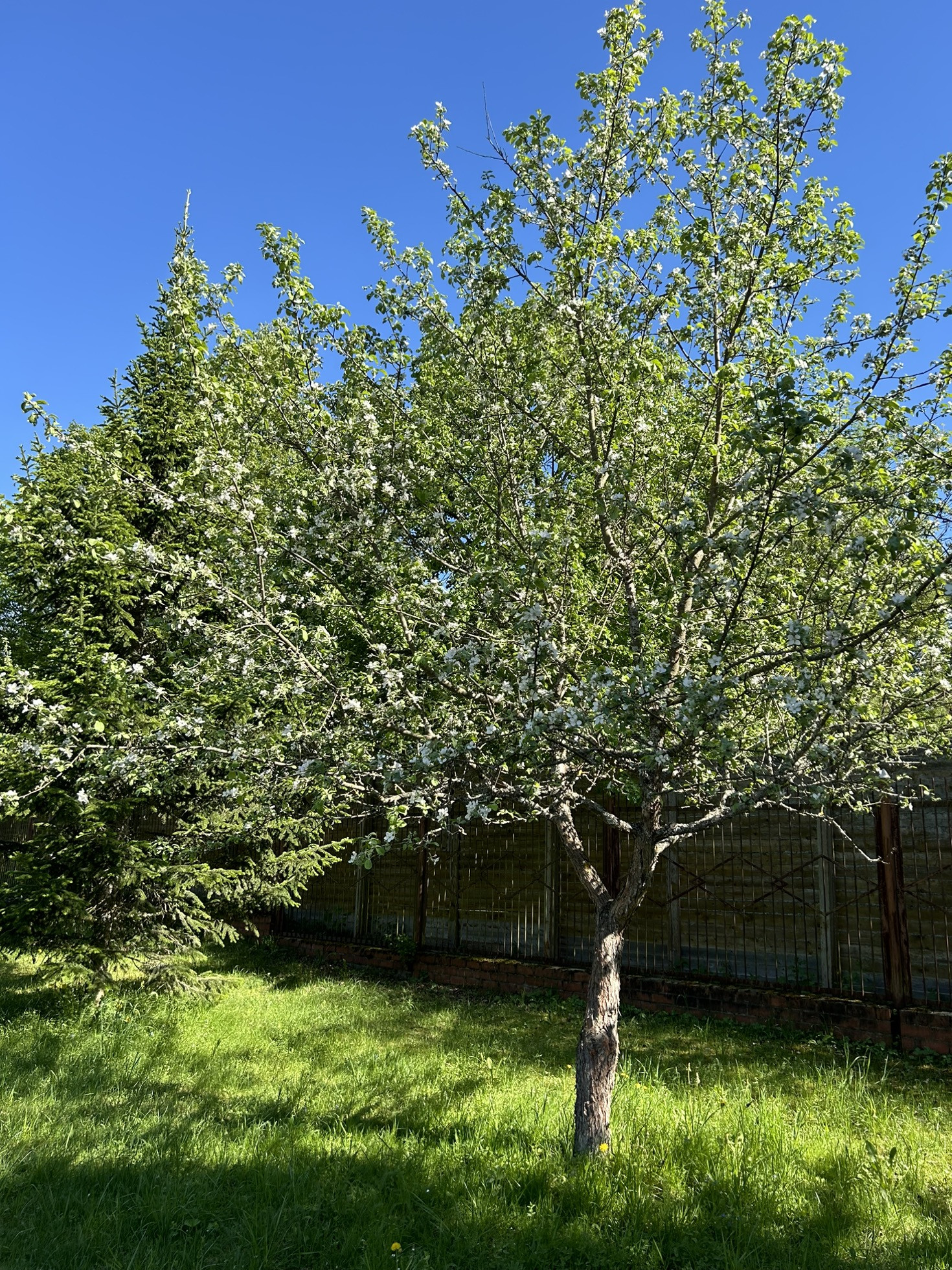 участок 52 сотки, на участке растут сосны, ели, плодоносящие яблони, сирень.