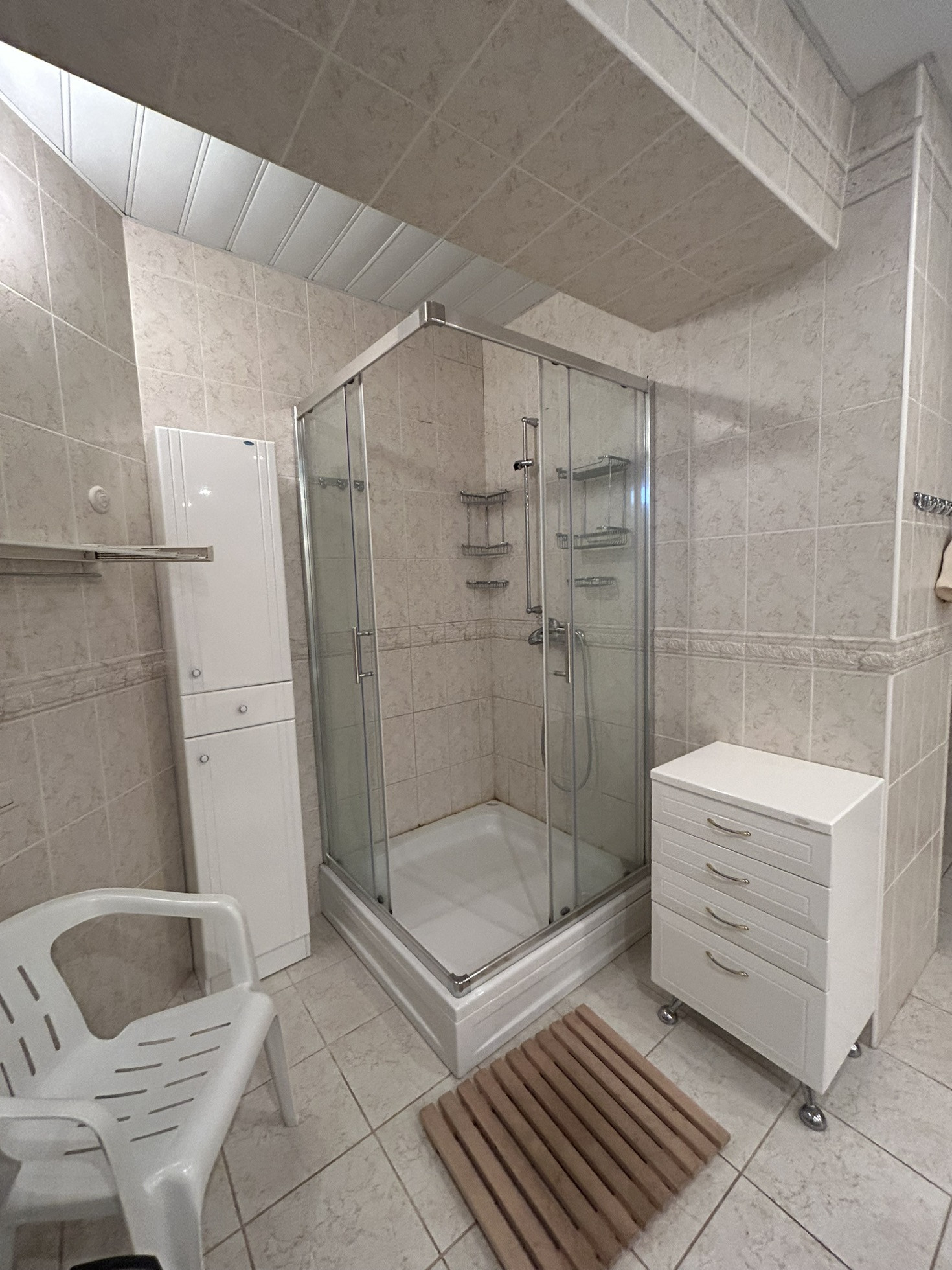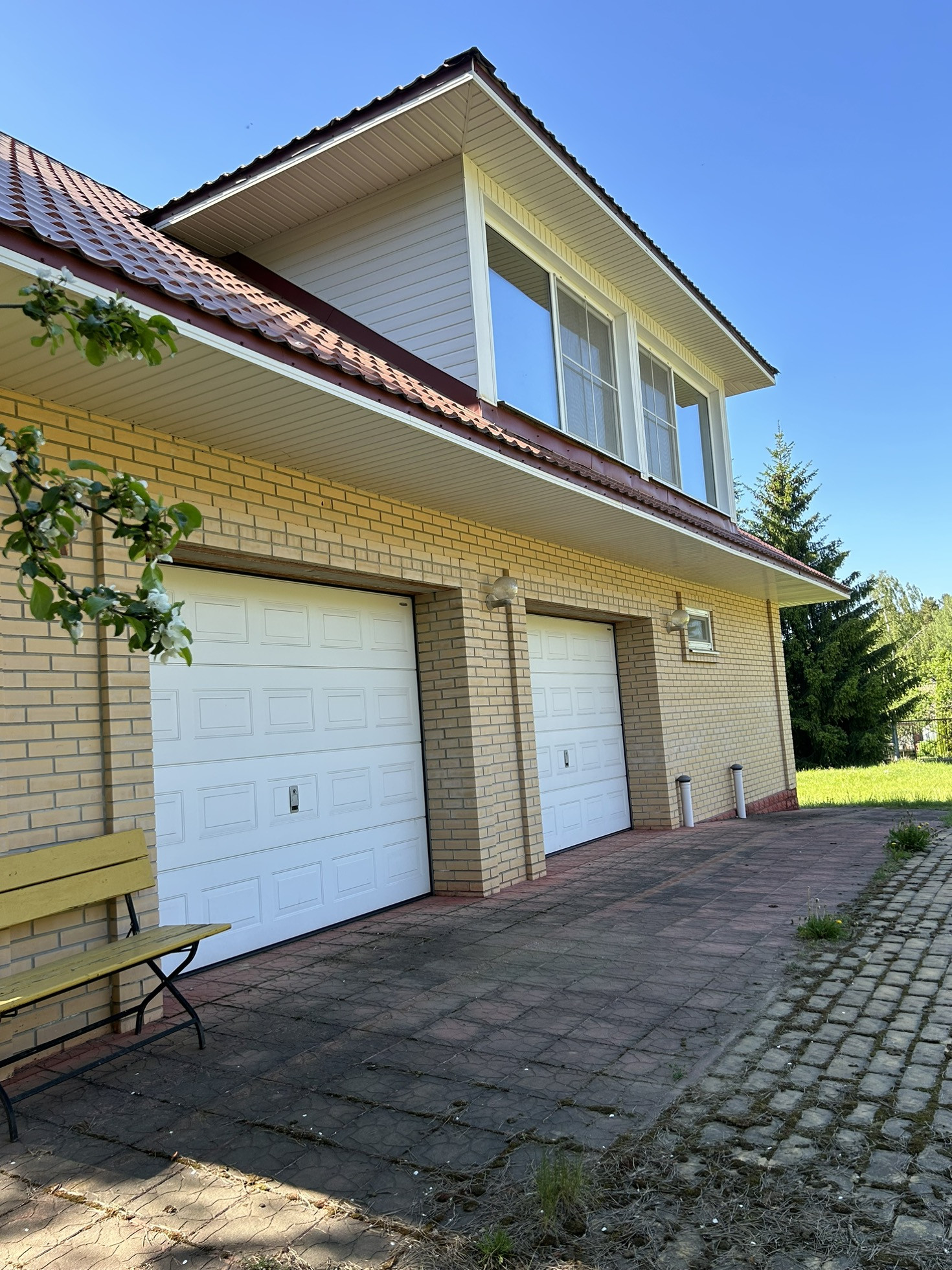 Есть гостевой дом 180 кВ.м., на первом этаже которого гараж на 2-3 машины, есть оборудованный под хранение продуктов подвал, на втором этаже комнаты отдыха.