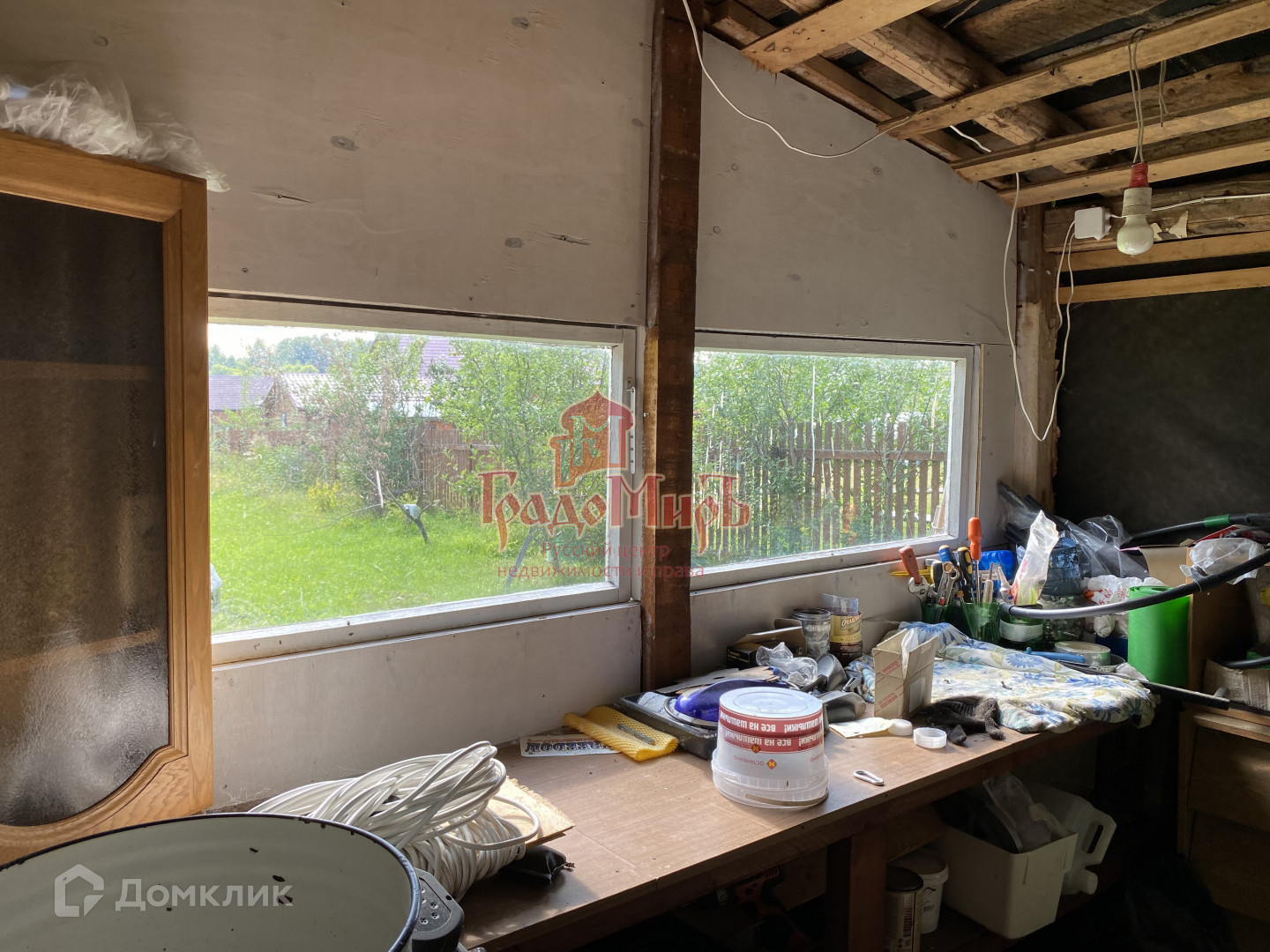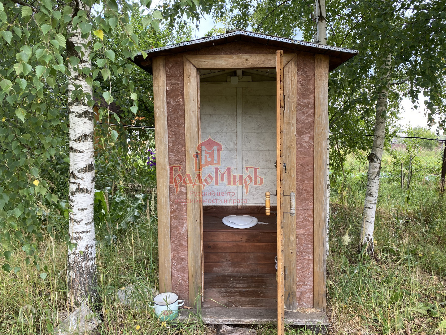 На участке есть сруб для бани из бруса (4х4м.) со вторым этажом и террасами (6х7м.). Также есть небольшая бытовка, душевая и туалет.