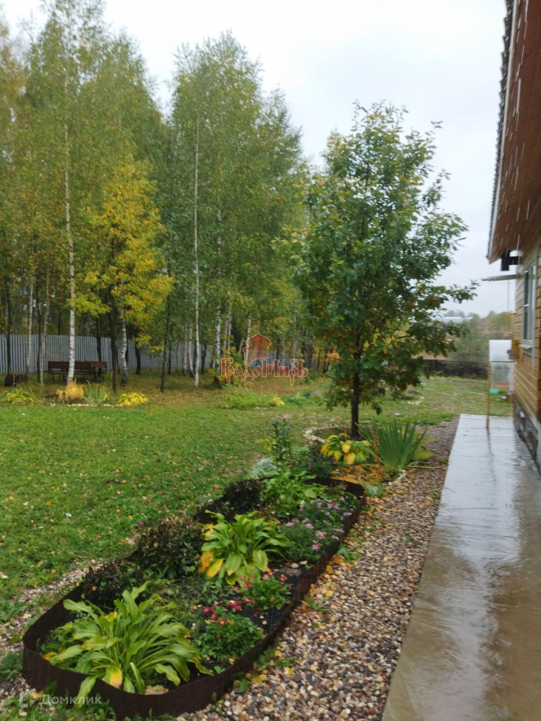 На участке растут грибы, высажены кусты малины, яблони и груши.