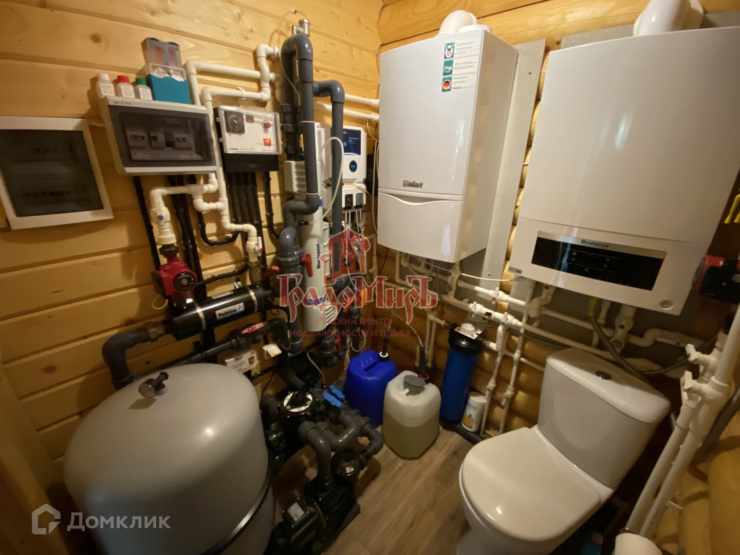 В бане полностью автономная система отопления (два котла - на бассейн и на отопление, воду), теплый пол по всему 1 этажу.