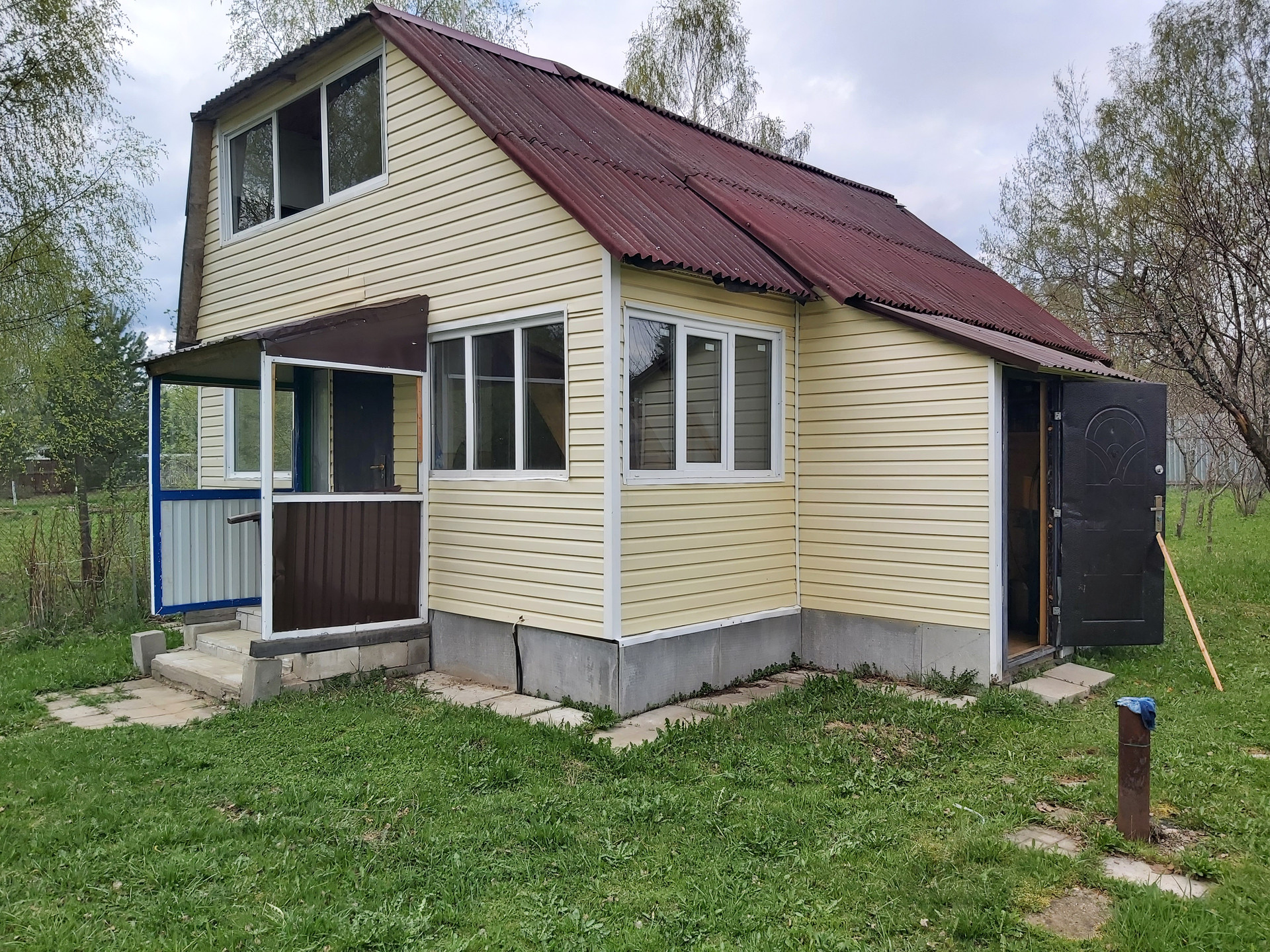 ОБ ОБЪЕКТЕ: Небольшой двухэтажный каркасный дом - дача на мелко заглубленном ленточном фундаменте со всеми коммуникациями для круглогодичного проживания. Общая площадь домам 73 кв.м. На первом этаже: терраса, гардеробная, совместный сан.узел ( установлена джакузи ), две комнаты и прихожая. На втором этаже: лоджия, гардеробная и одна комната. Снаружи дом обшит сайдингом. Внутри комбинированная отделка - вагонка, обои и другие материалы. Везде вставлены окна ПВХ. Есть домофон
