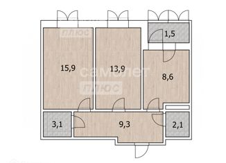 Общая площадь: 52.9 м2