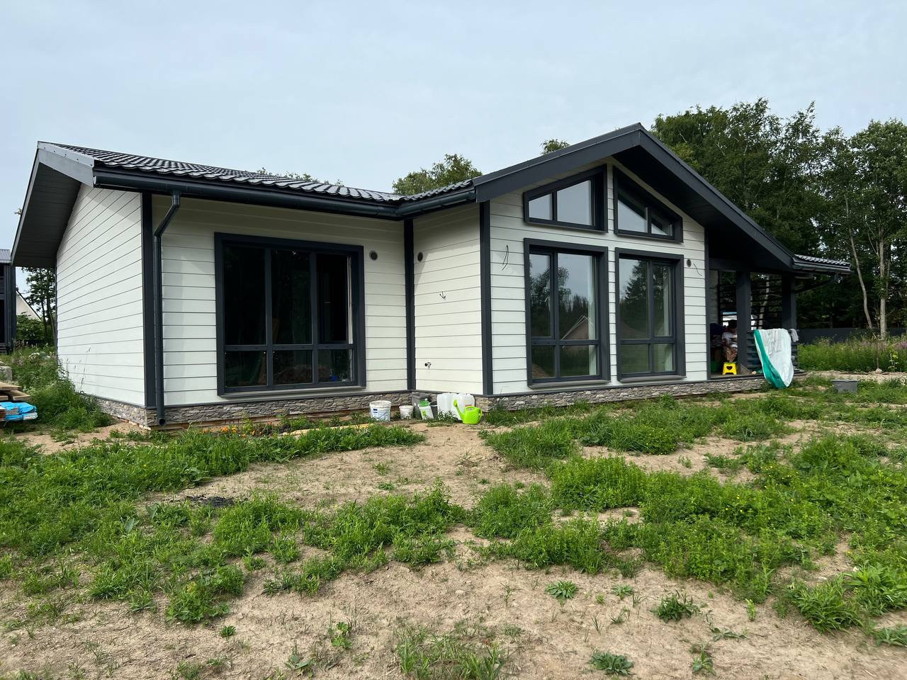 Фундамент ж/б плита, утеплена и гидроизолирована с монтажом отведения вод от фундамента. Наружная отделка стен Скандинавская доска UYS. Стены 285 мм, очень теплые- проверено прошедшей холодной зимой. В строительстве использовали хорошие материалы- любые проверки!!!