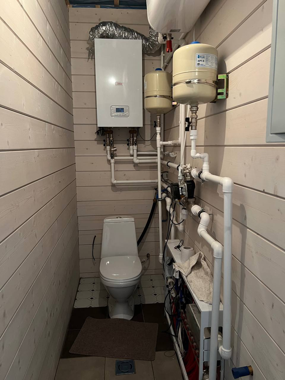 В доме 4 спальни, большой санузел, сантехническое оборудование в отдельном техническом помещении