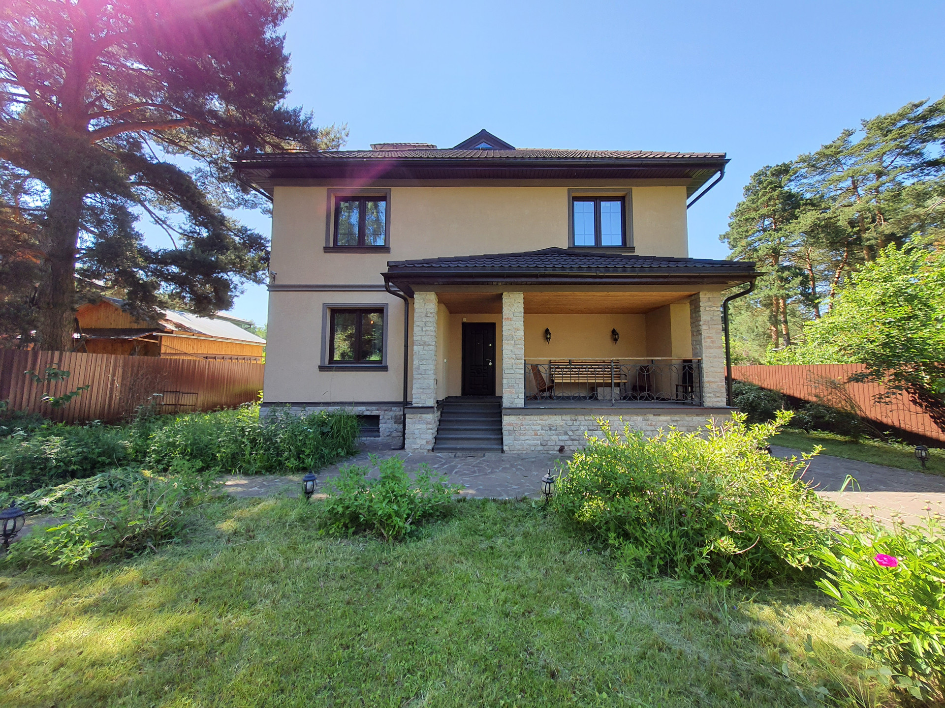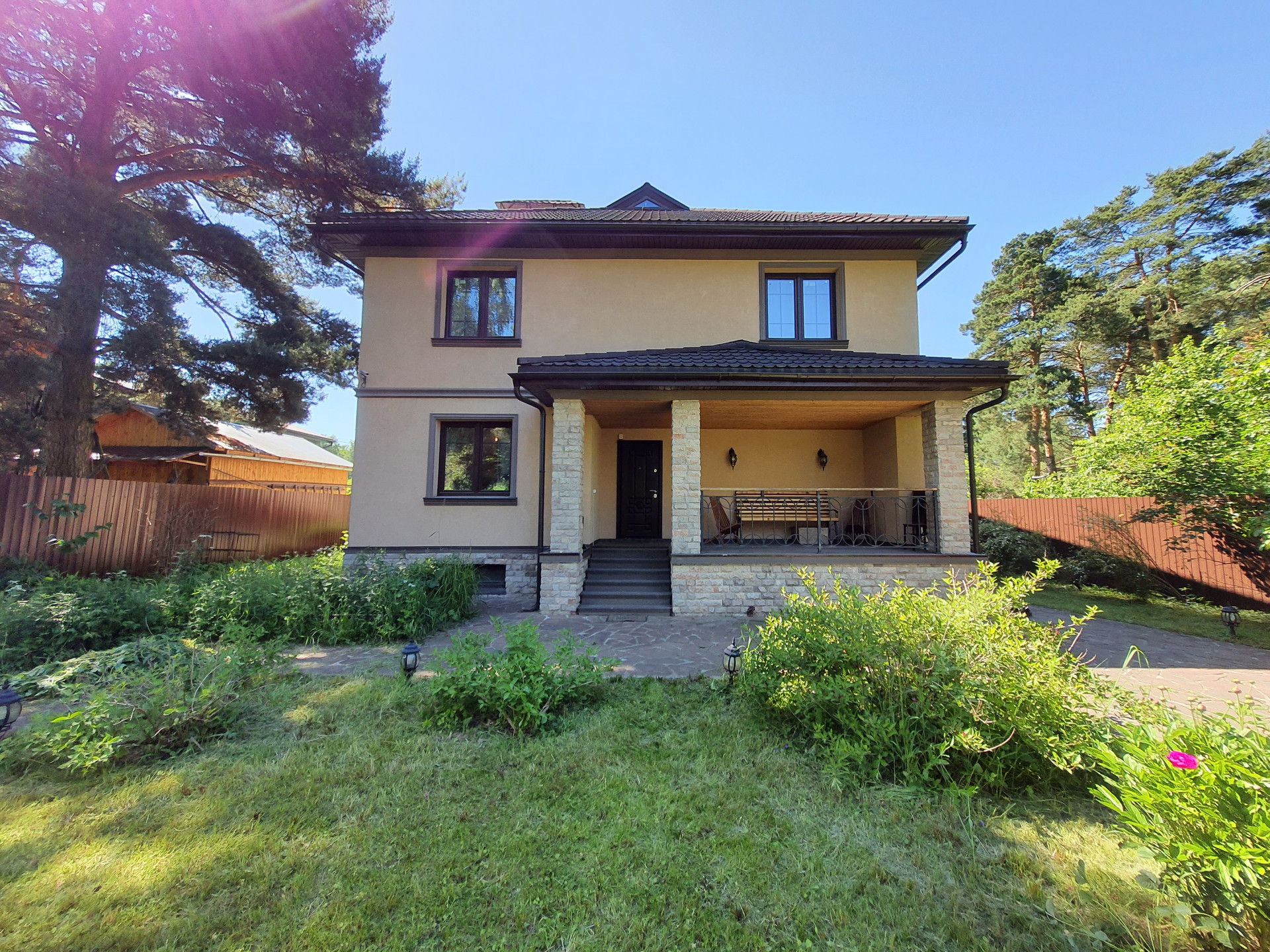 Новорижское, Волоколамское ш., 35 км от МКАД, Обновленный Труд. Замечательный двухэтажный с цоколем жилой дом площадью 350 (по БТИ 270) кв.м в деревне. Высокое качество общестроительных и отделочных работ. Удобная функциональная планировка: на 1 этаже гостиная с камином, кухня-столовая, спальня, кабинет, санузел с душем. На 2 этаже три спальни, санузел с ванной, гардеробная. В цоколе котельная, постирочная, две комнаты, две кладовые. Теплое чердачное помещение. Магистральный газ; электричество 15 кВт, 3 фазы, резервный бензогенератор; центральный водопровод с системой водоподготовки; биосептик ТОПАС-8. Пультовая охрана, Интернет  оптоволокно. Отличный участок площадью 16 соток с ландшафтным дизайном: с декоративными и садовыми деревьями и кустарниками, газон. Парник, беседка-барбекю, два хозблока, крытая парковка. Вокруг сосны!!!2 км до станции Манихино. Удобный круглогодичный асфальтированный подъезд.
