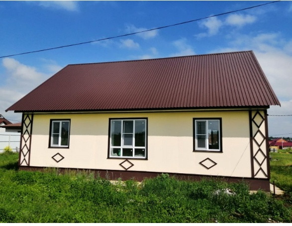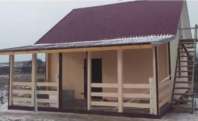 Фундамент свайно-винтовой, стены внешние шифер, внутренние гипоскартон, внутренний ЭКОЛОГИЧНЫЙ утеплитель прессованная солома собственного производства. Крыша металлочерепица, окна ПВХ трехкамерные. В доме установлено отопление теплые полы под керамогранитом, заведены вода и канализация, электропроводка.