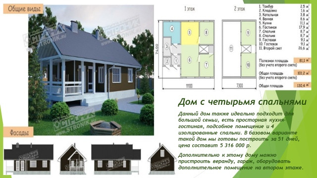 Этот дом специалисты нашей компании готовы построить для Вас за 50 дней. Возможны дополнительные варианты отделки.
