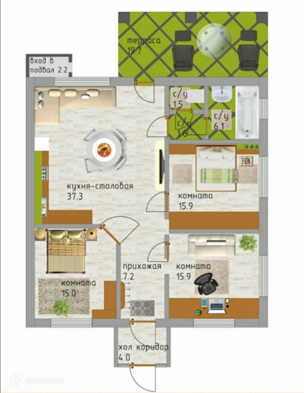 Общая площадь 103.4 м2