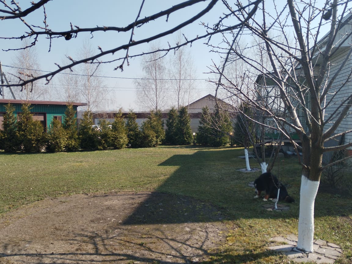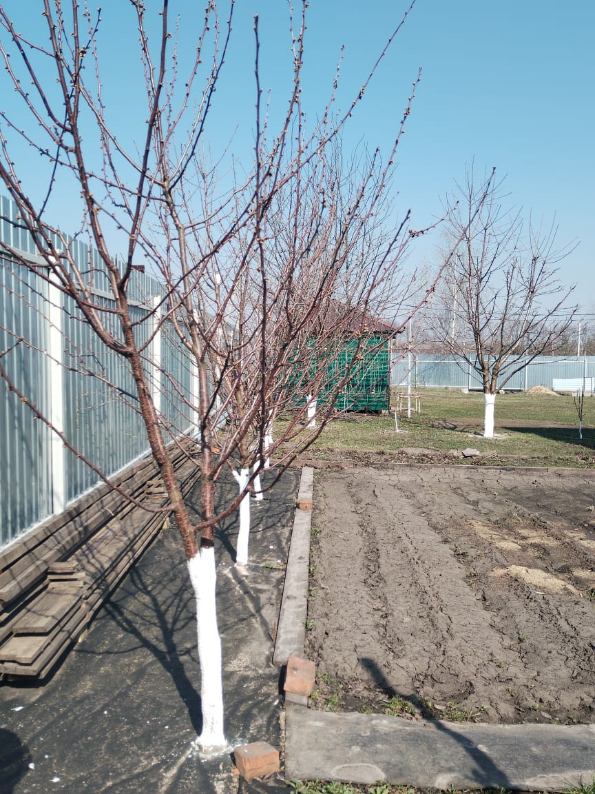 + растут плодовые деревья (слива, вишня, черешня, яблони, абрикос.) и хвойные растения (туи, можжевельники, барбарисы, спири и т.д ), есть сирень и березы вдоль забора. Розы, смородина (чёрная, красная),  ежевика, клубника