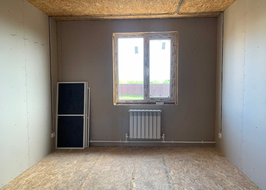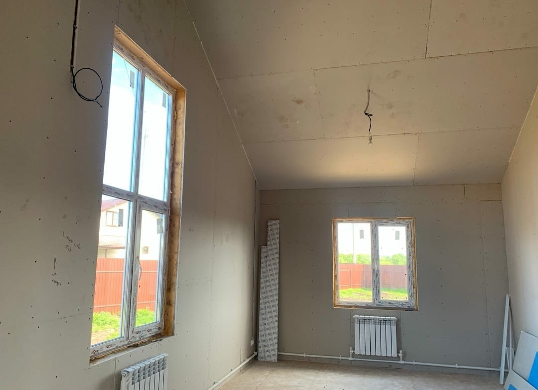 В дом заведен газ, установлен двухконтурный газовый котёл, полностью сделана система отопления. Смонтирована вся электрика, пол с теплоизоляцией.