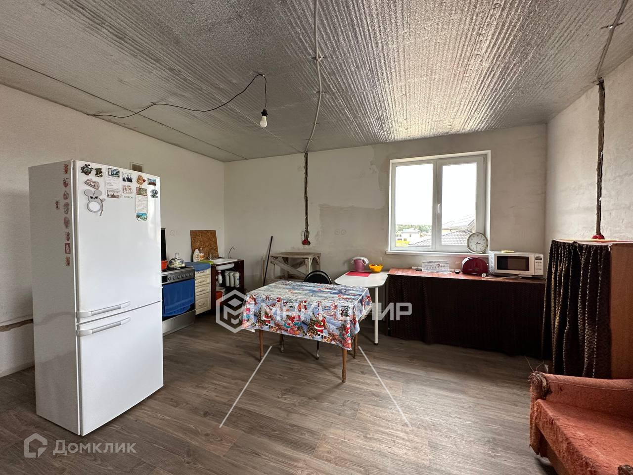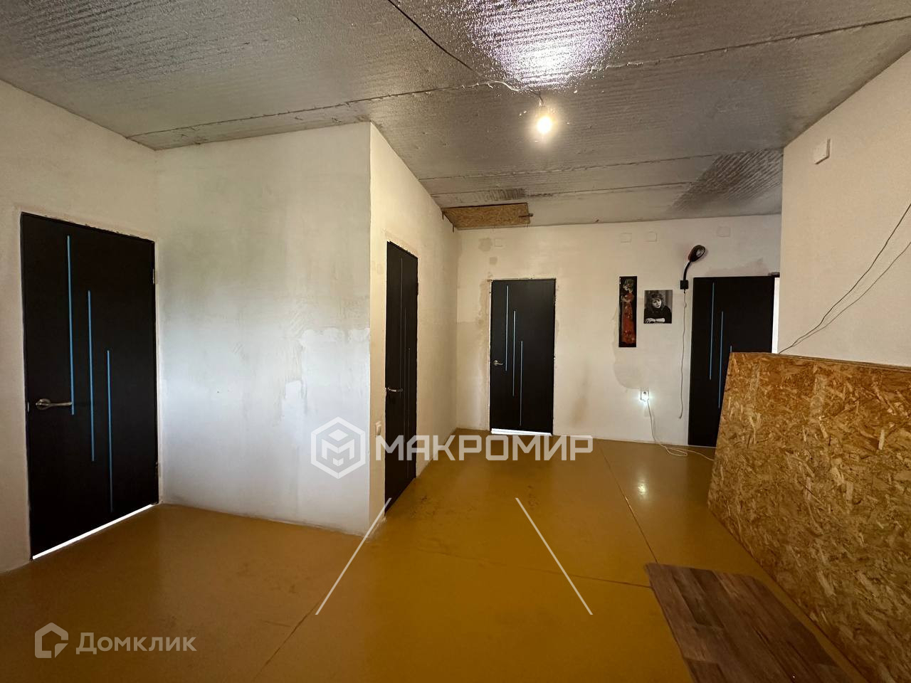 В доме частично сделан ремонт: полы и стены выровнены, готовы под обои, на кухне линолеум, установлены межкомнатные двери, одна большая комната полностью с ремонтом: натяжной потолок, обои, ламинат. В доме проведен интернет (оптоволокно).