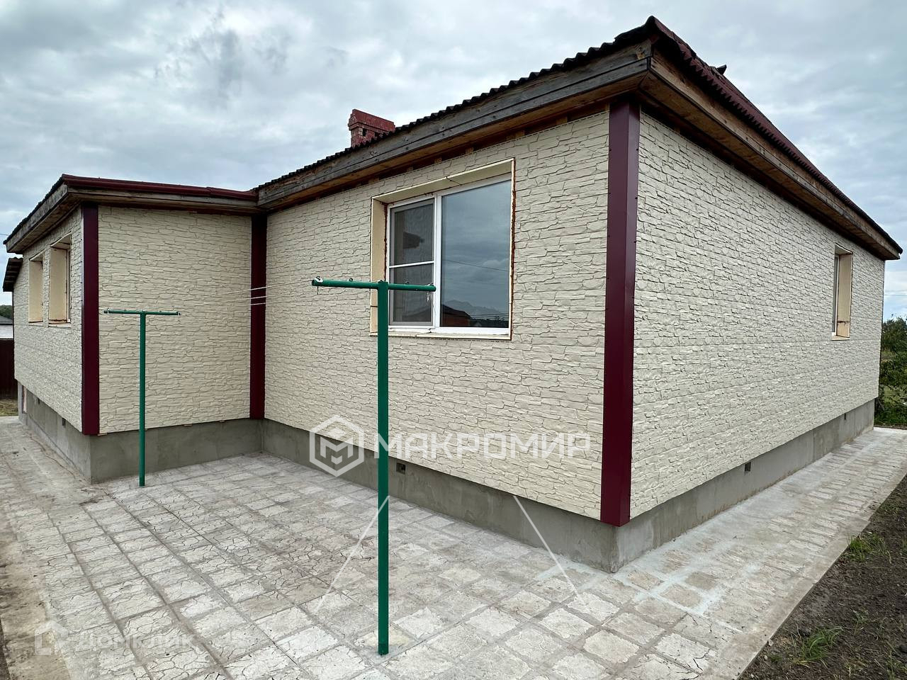 Дом выложен из арболитовых блоков, утеплен, обшит декоративным материалом. Толщина стен 40 см.
