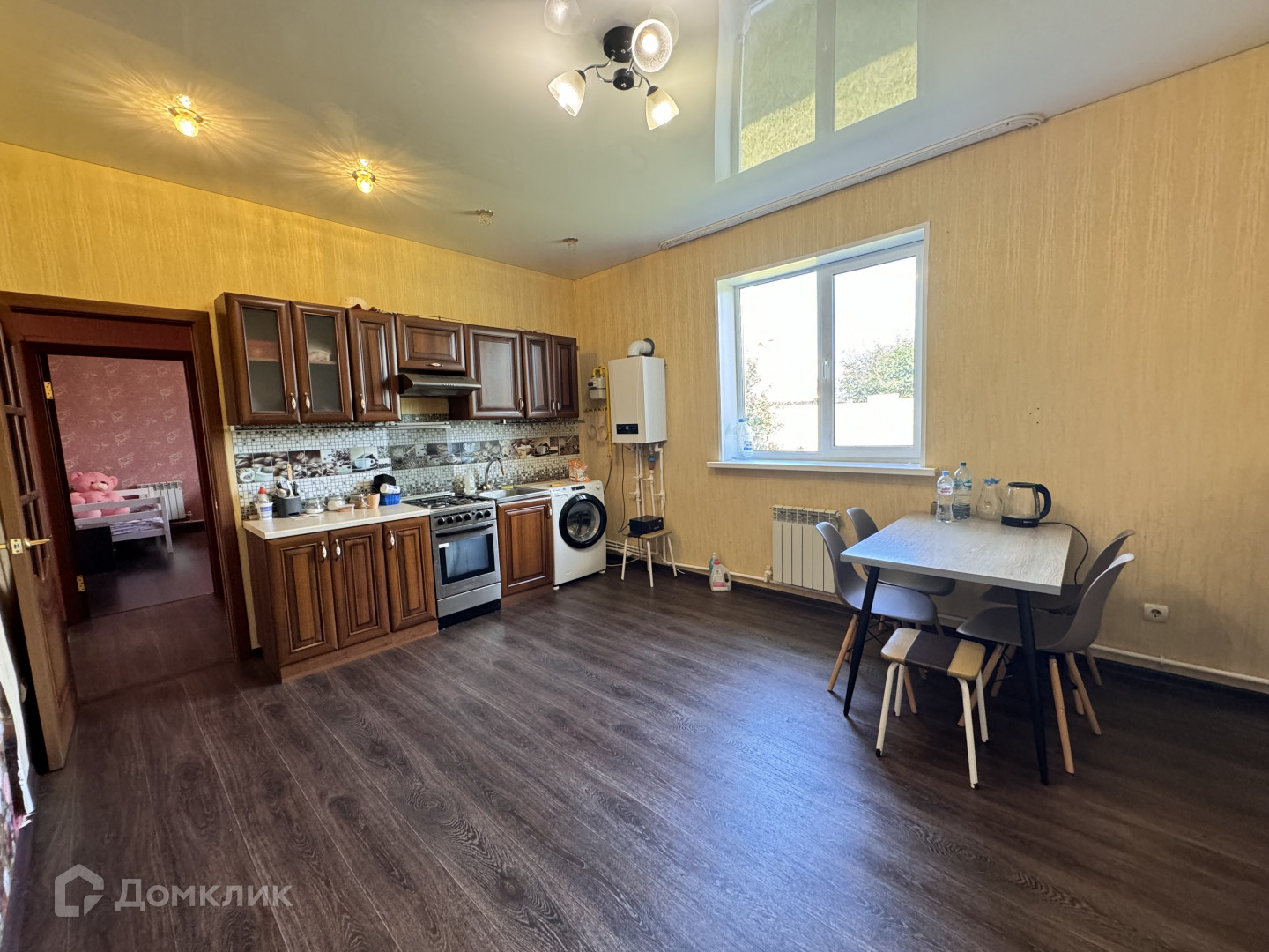 Дом состоит из трех жилых комнат и большой кухни- гостиной. Ремонт выполнен в едином стиле из качественных, современных отделочных материалов. Потолки натяжные, по периметру точечное освещение, стены оклеены обоями, на полу линолеум, санузел в кафеле.