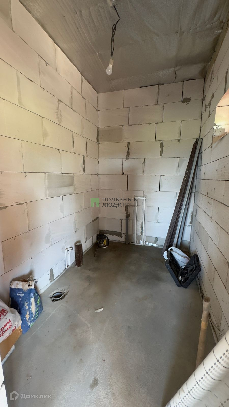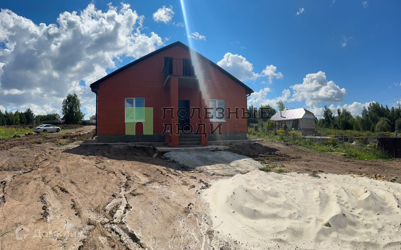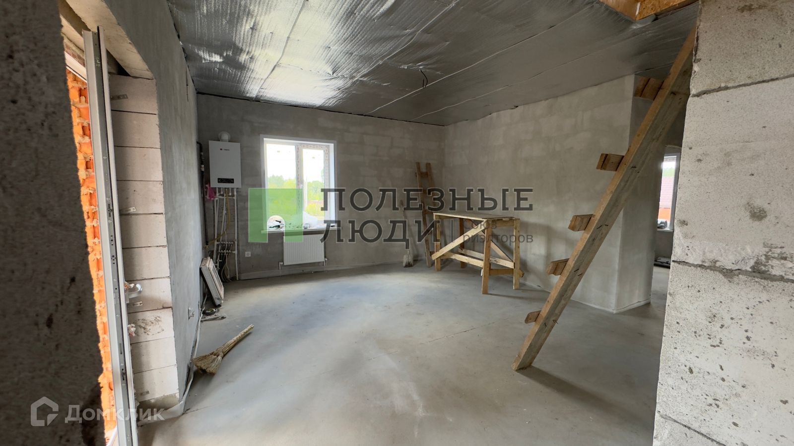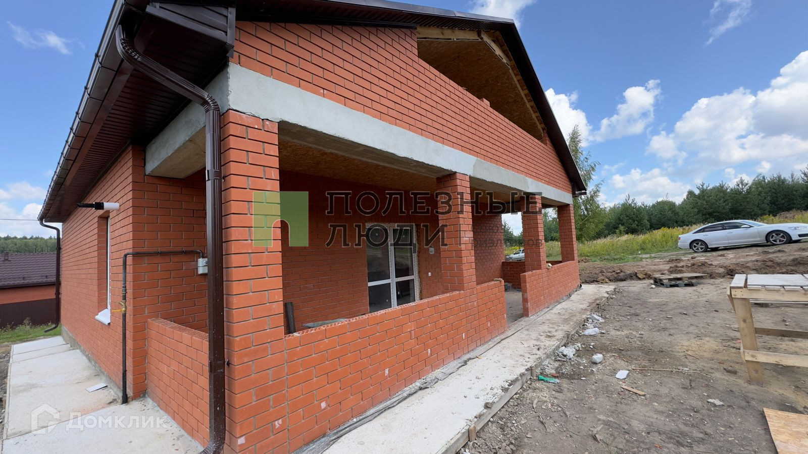 Сам дом из пеноблока,  облицован кирпичом. Стоит на ленточном фундаменте, крыша покрыта мягкой кровлей. В дом заведены и разведены все коммуникации: газ, свет, сделан септик, скважина, установлен двухконтурный котел на отопление.