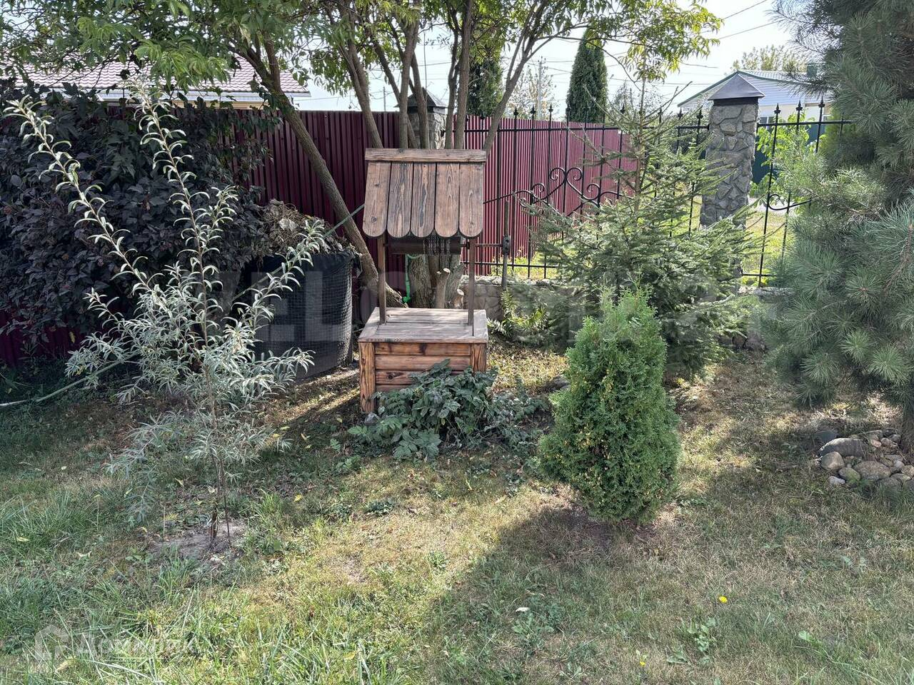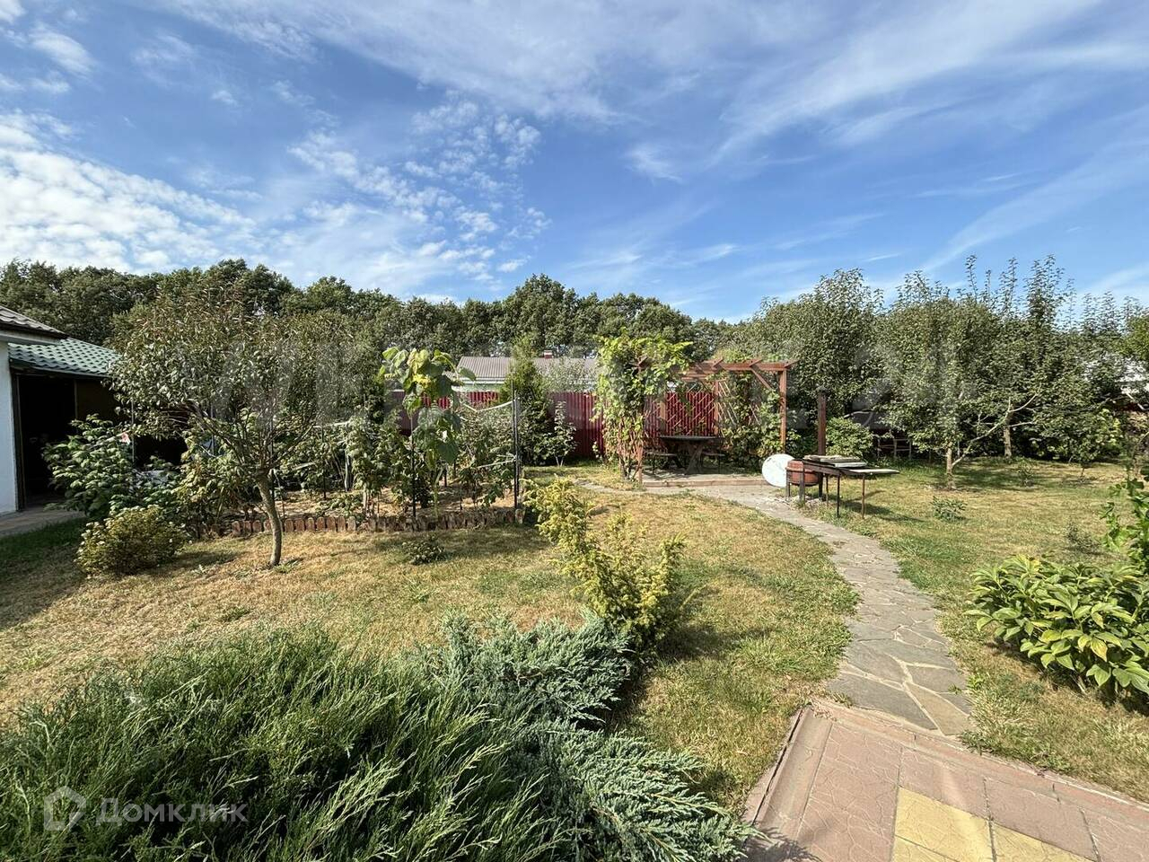 На участке имеются сортовые плодовые и декоративные растения и теплые грядки для овощных культур.
