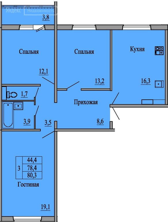 Общая площадь 78.4 м2