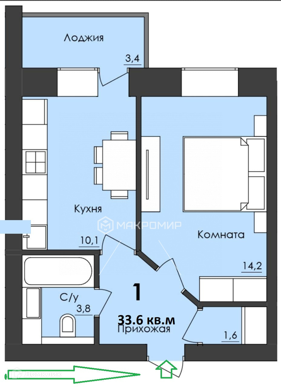 Балкон, лоджия 1 лоджия