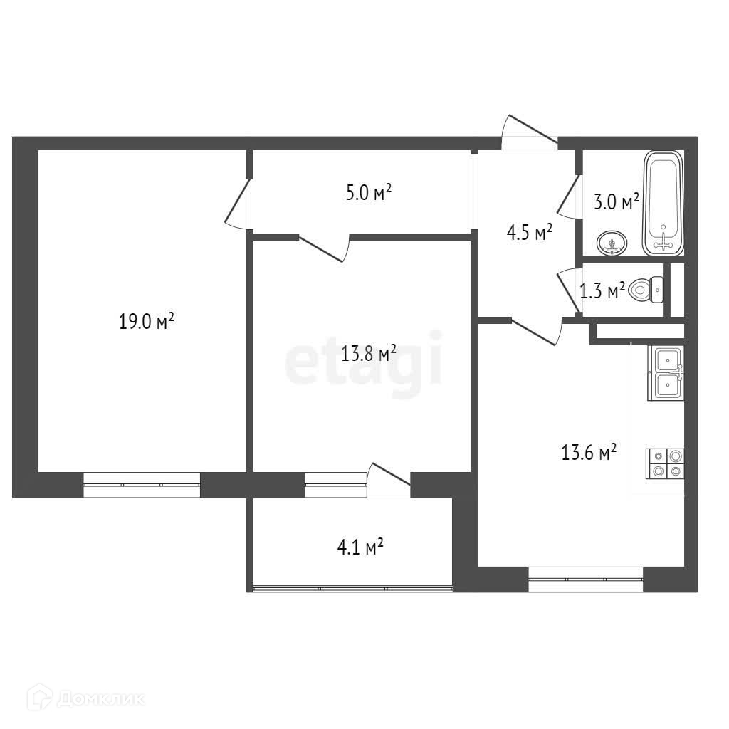 Общая площадь 60.3 м2