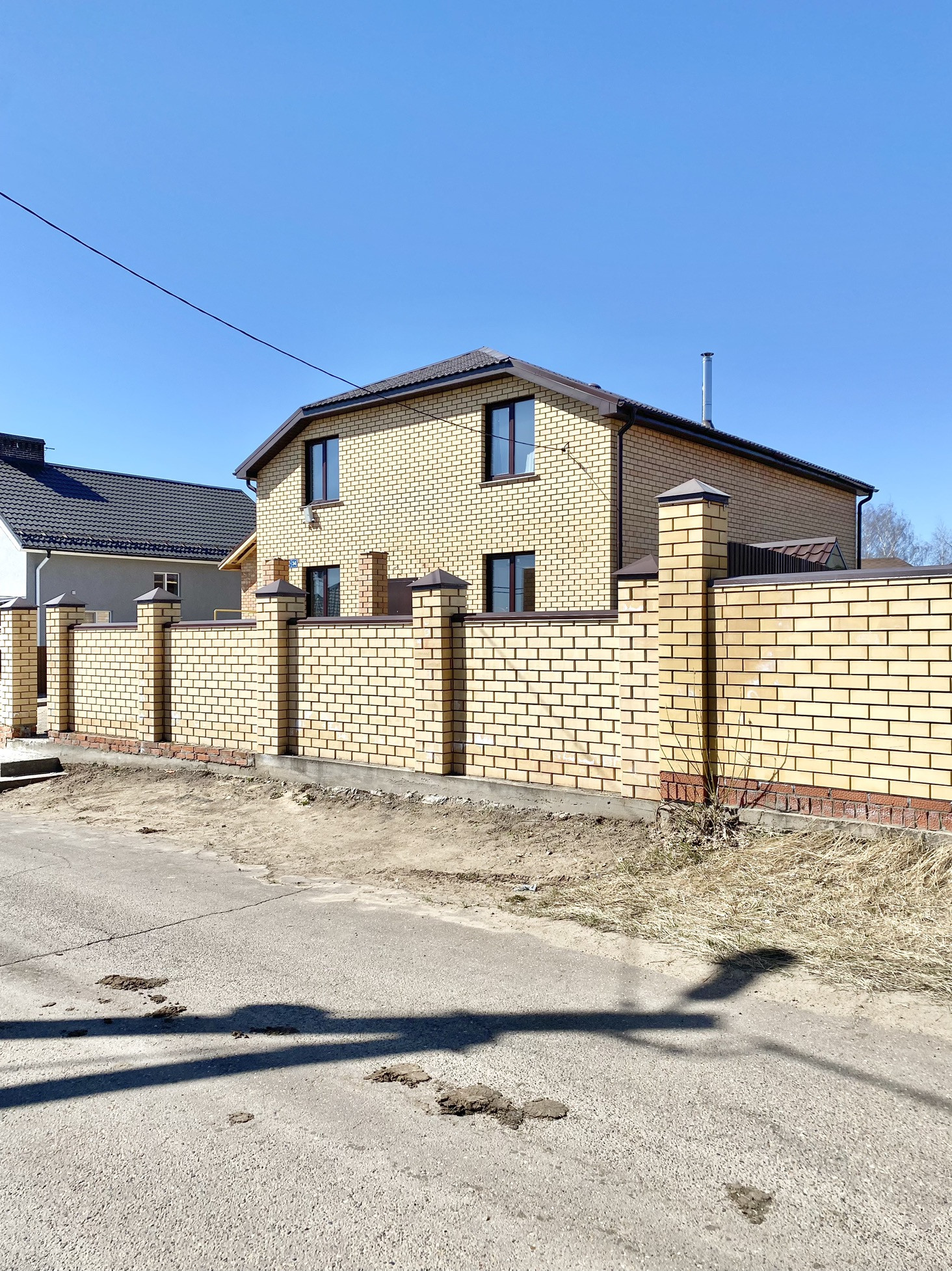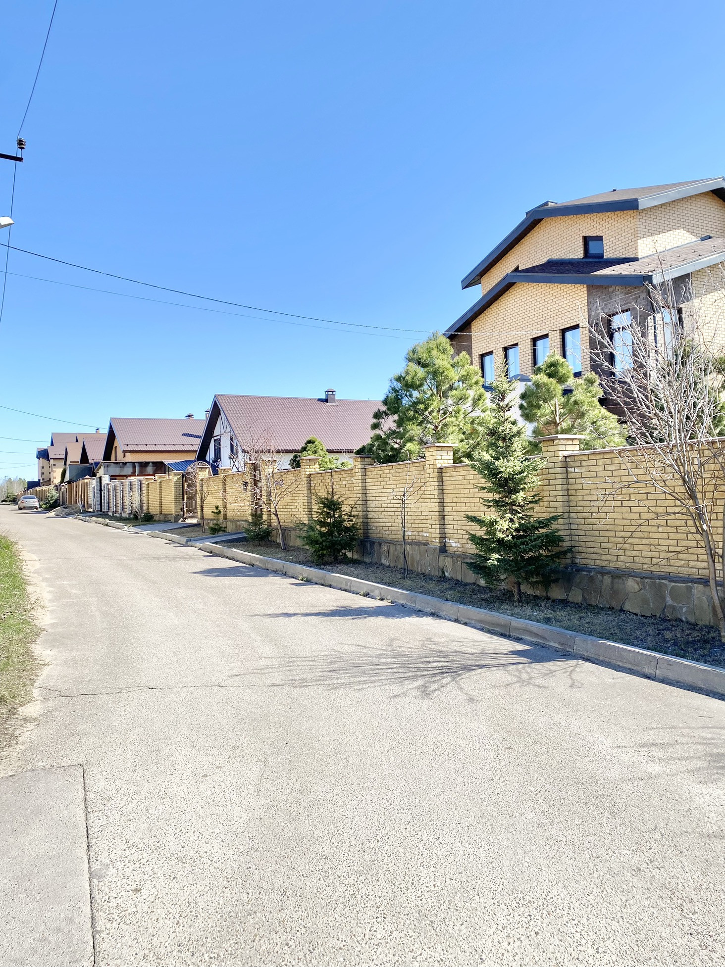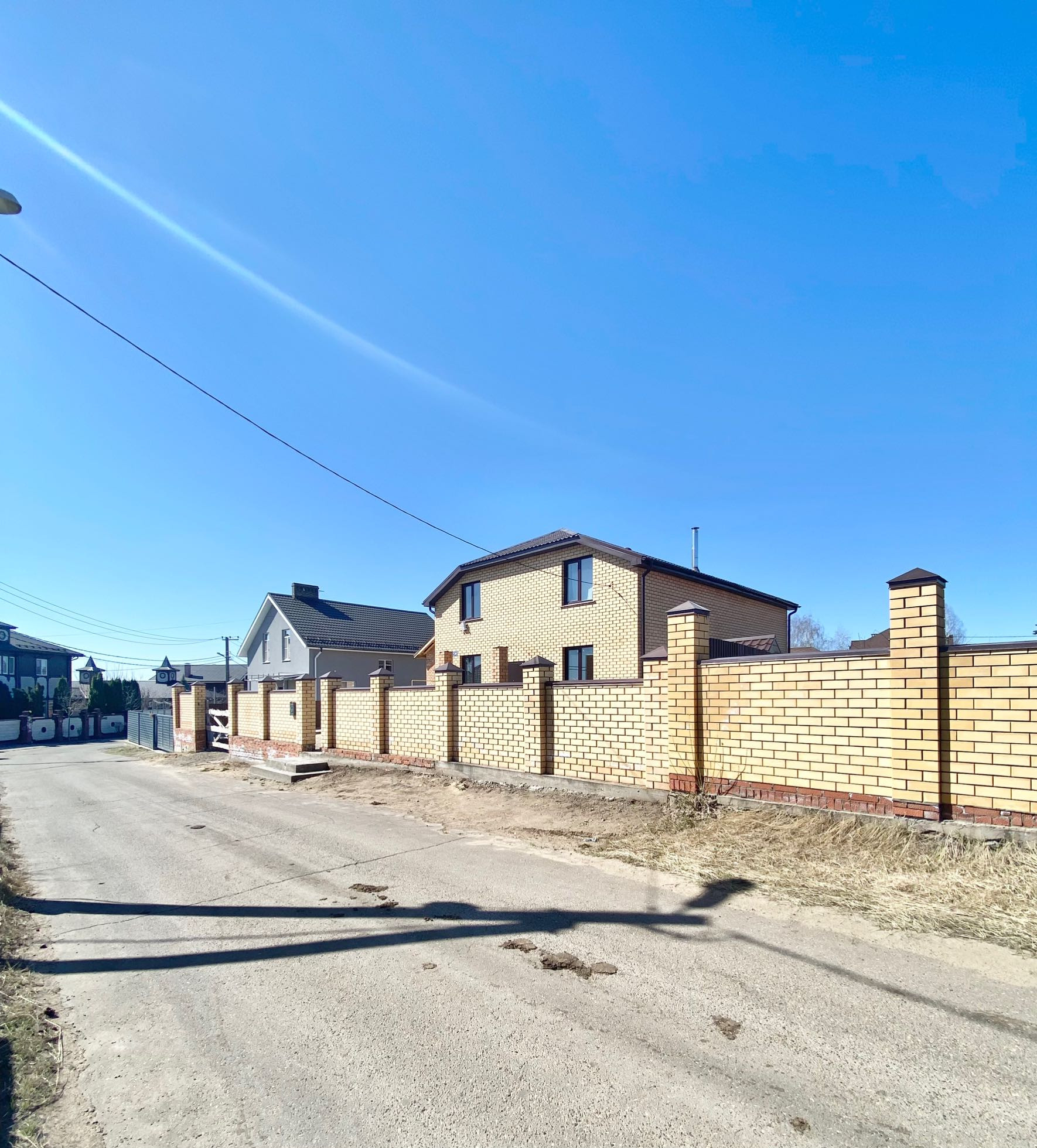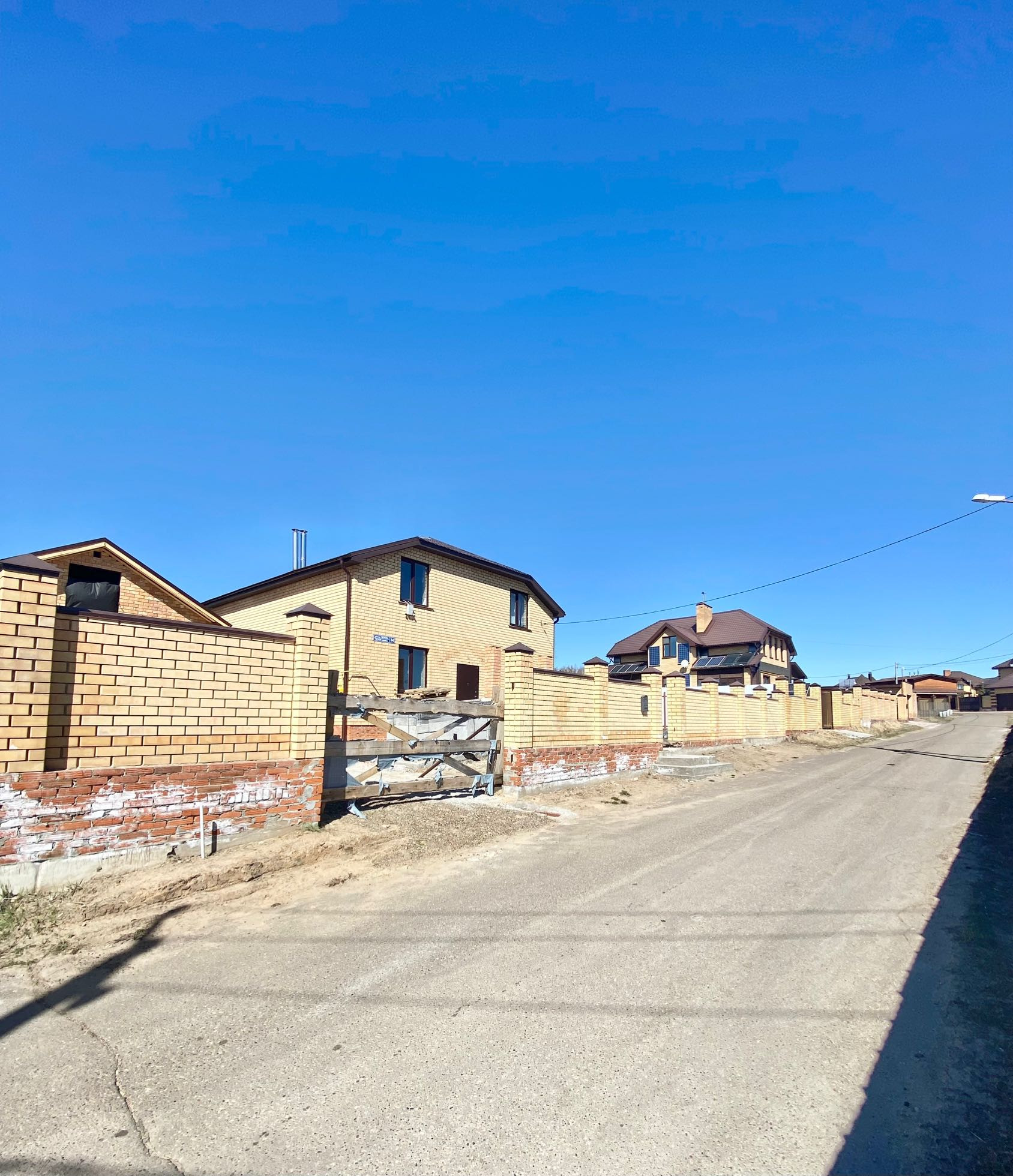 Коттеджный поселок состоящий из нескольких улиц имеет закрытую, охраняемую и благоустроенную территорию. Участок огорожен по периметру высоким кирпичным забором с автоматическими воротами.
