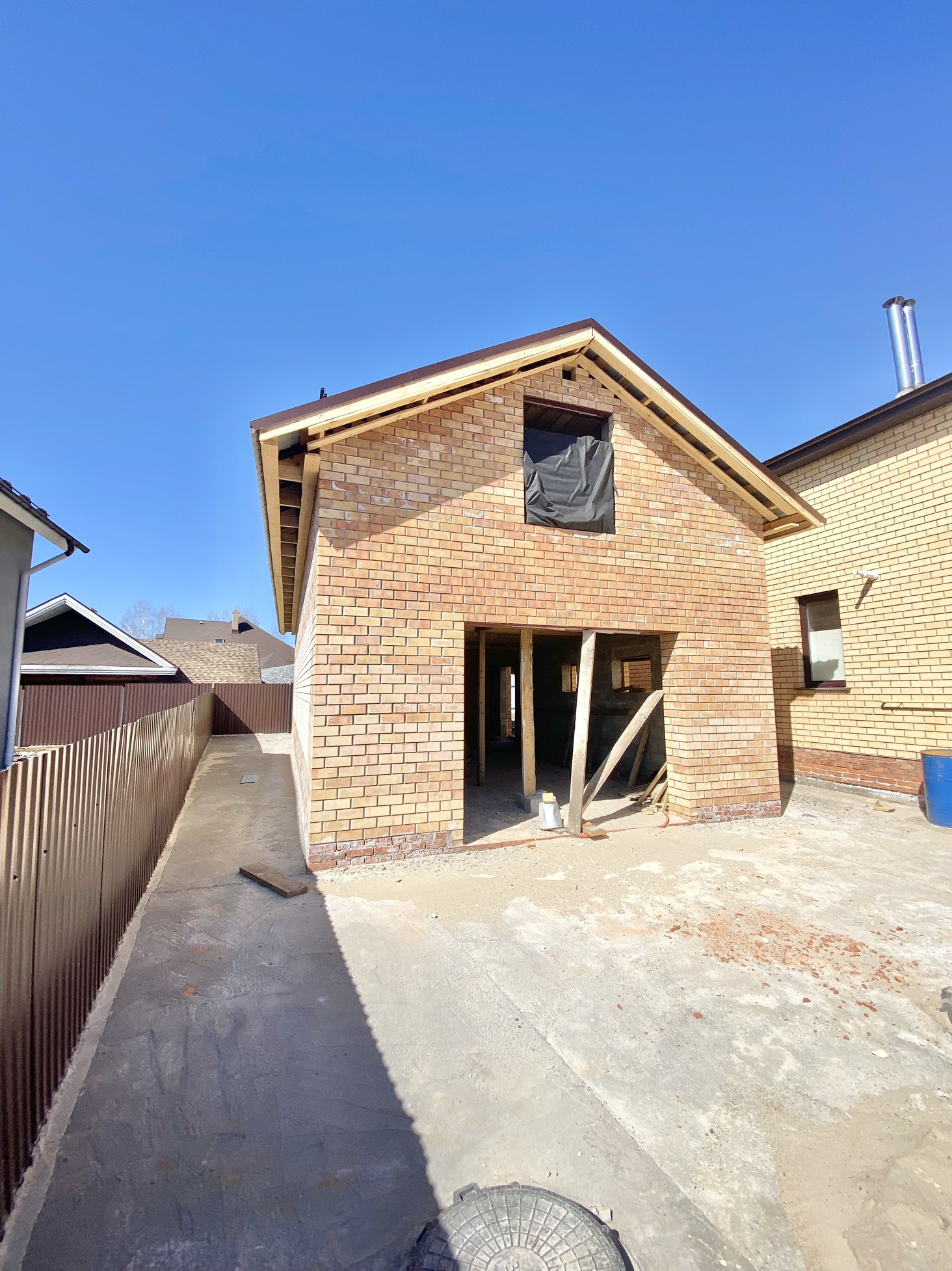 Периметр дома полностью огорожен.