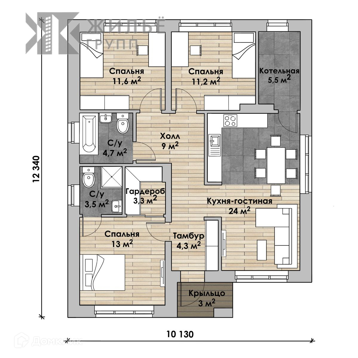 3 спальные комнаты